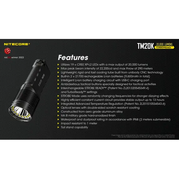 NITECORE TM20K , ο νικητής του βραβείου RED DOT για το 2022