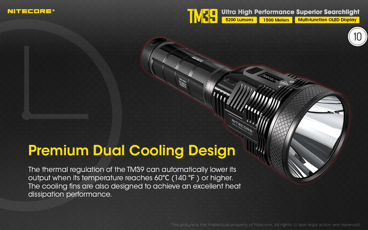 10. Διπλό σύστημα ψύξης. Ο ρυθμιστής της θερμοκρασίας που διαθέτει ο TM39 μπορεί να χαμηλώσει αυτόματα την ένταση φωτισμού όταν η θερμοκρασία φθάσει ή
