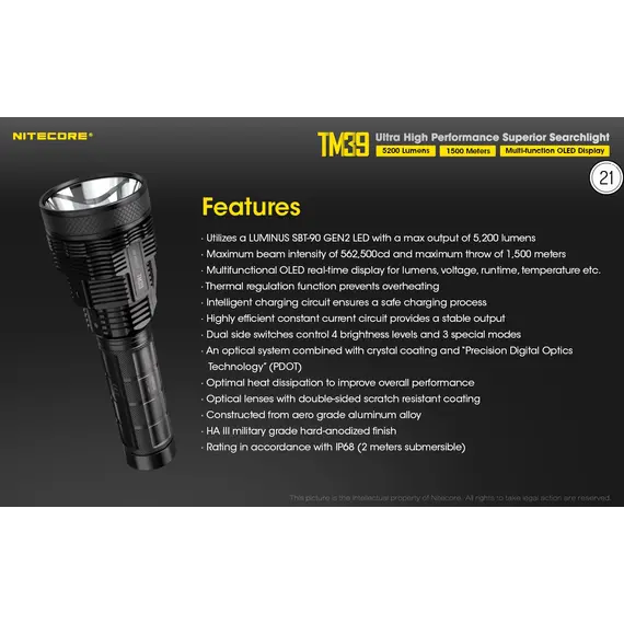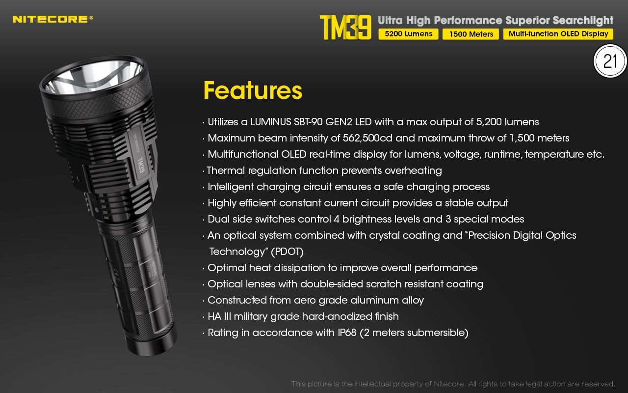 ΦΑΚΟΣ LED NITECORE Tiny Monster TM39, 5200Lumens,1500metres