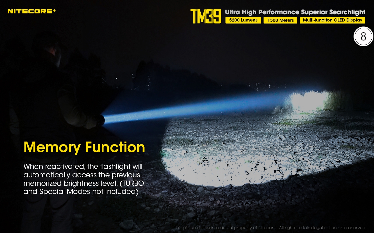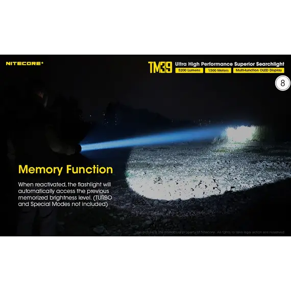 08. Διαθέτει λειτουργία μνήμης και ο φακός θα μεταβεί αυτόματα στην τελευταία χρησιμοποιούμενη ένταση όταν ενεργοποιηθεί ξανά. Η ένταση TURBO Και οι ειδικές