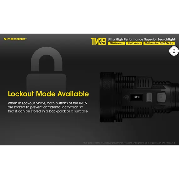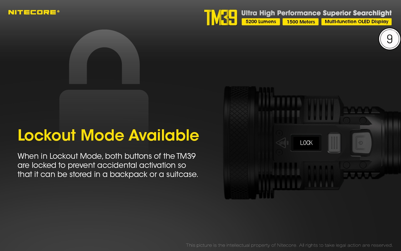 09. Η λειτουργία κλειδώματος προστατεύει από ατυχή ενεργοποίηση. Και οι δύο διακόπτες του φακού κλειδώνουν και έτσι ο φακός μπορεί να αποθηκευτεί με ασφάλεια