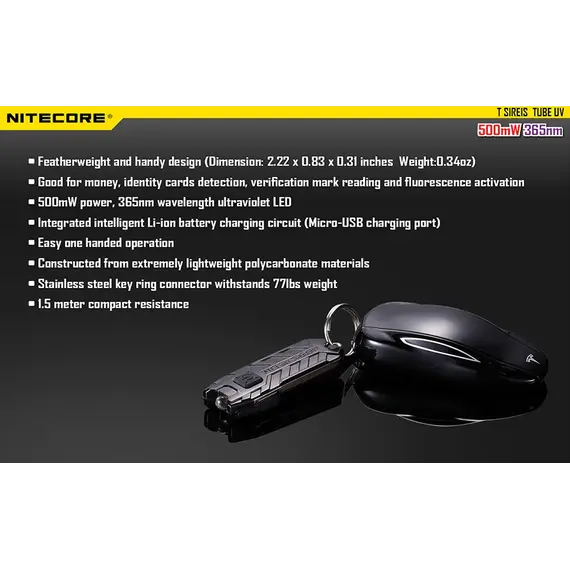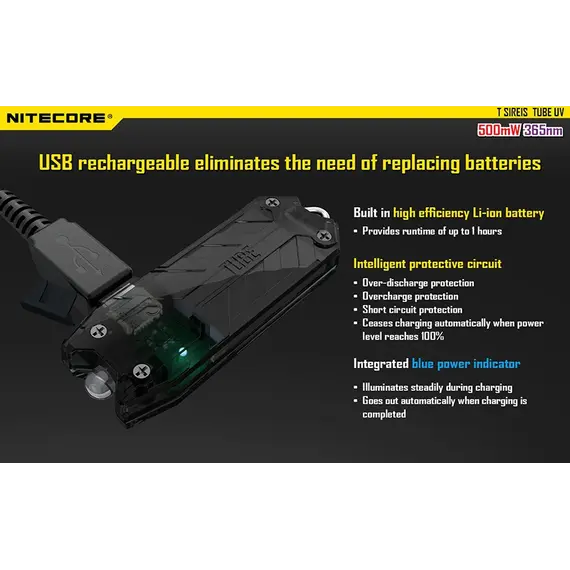 ΦΑΚΟΣ LED NITECORE TUBE, Μπρελόκ, Rechargable-UV