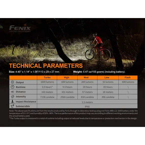 Fenix BC26R διαθέτει λειτουργία turbo 1600 lumen, αυτός ο φακός μπορεί να φωτίσει έως 169 μέτρα.
