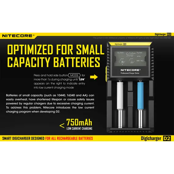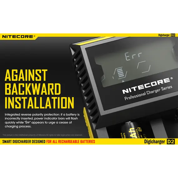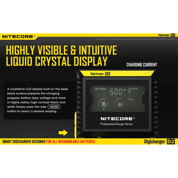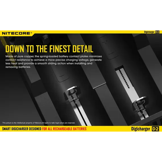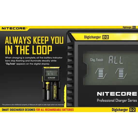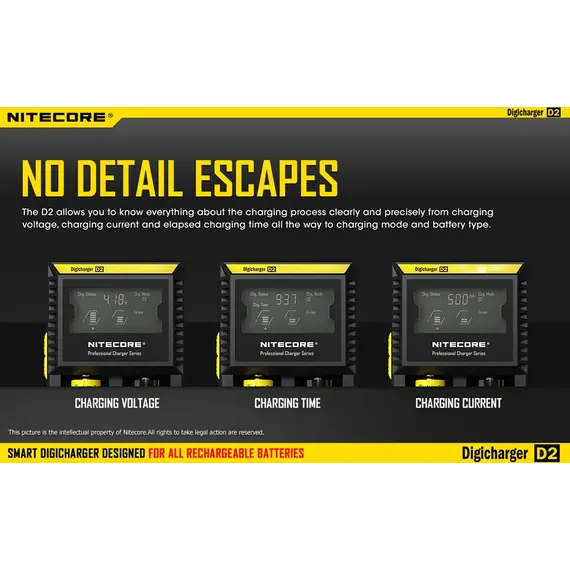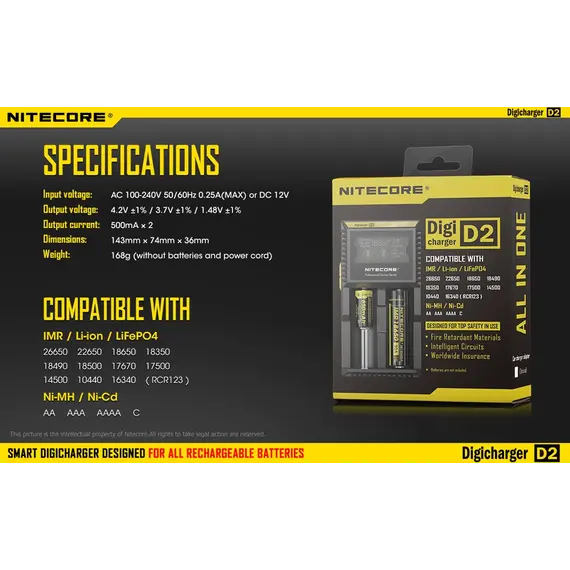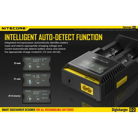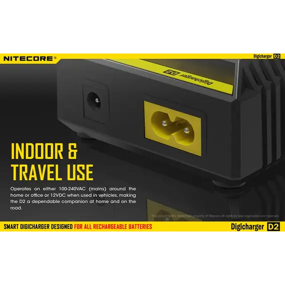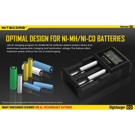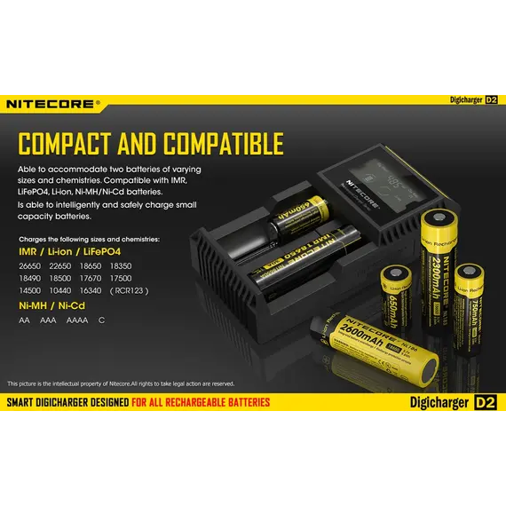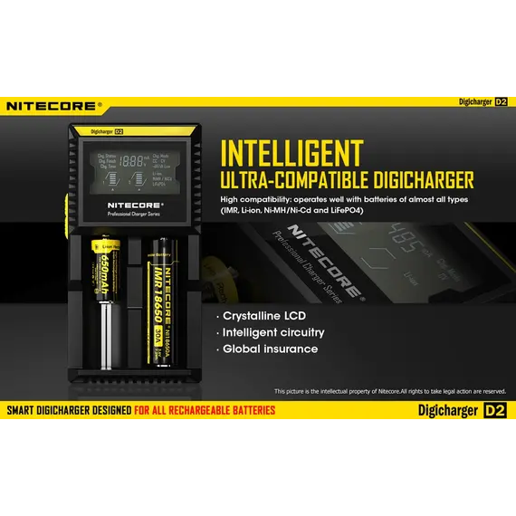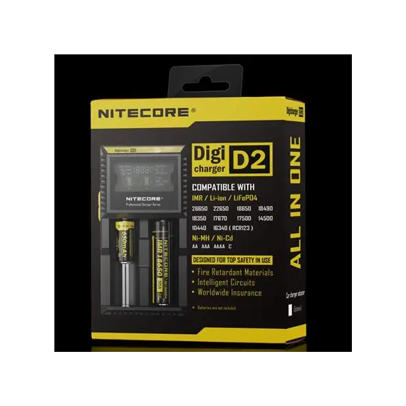 Ο Nitecore D2 είναι ένας διεθνής έξυπνος φορτιστής συμβατός με σχεδόν όλες τις κυλινδρικές επαναφορτιζόμενες μπαταρίες, εξαλείφοντας έτσι την ανάγκη για πολλούς φορτιστές.