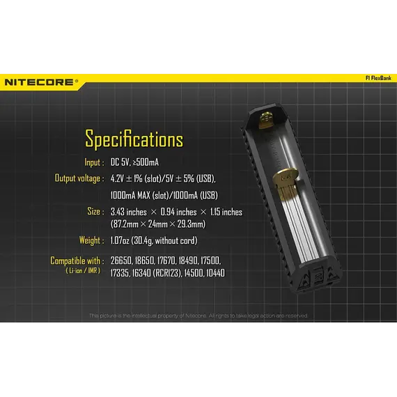 ΦΟΡΤΙΣΤΗΣ NITECORE F1, μίας θέσης + Power Bank
