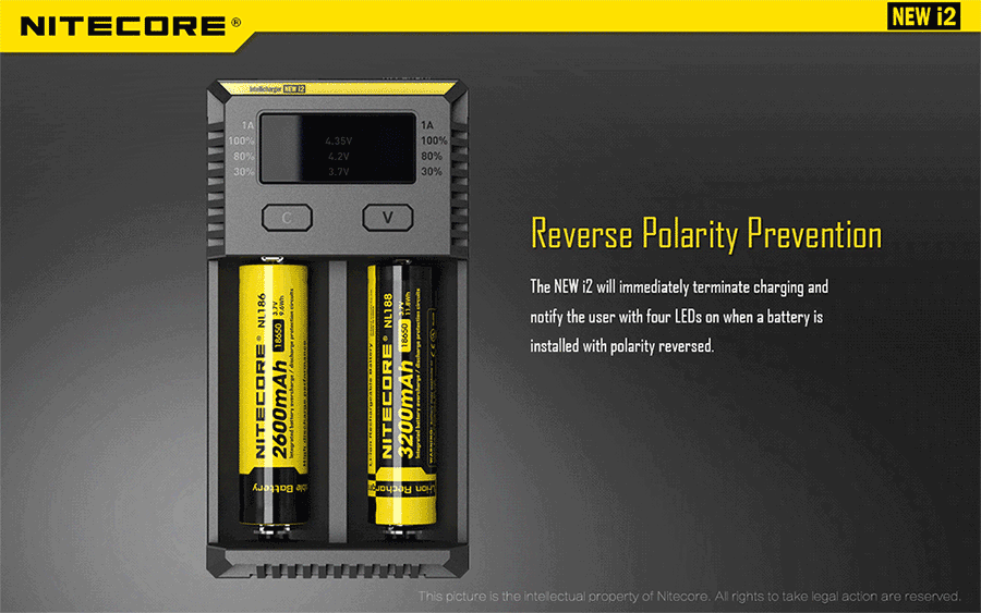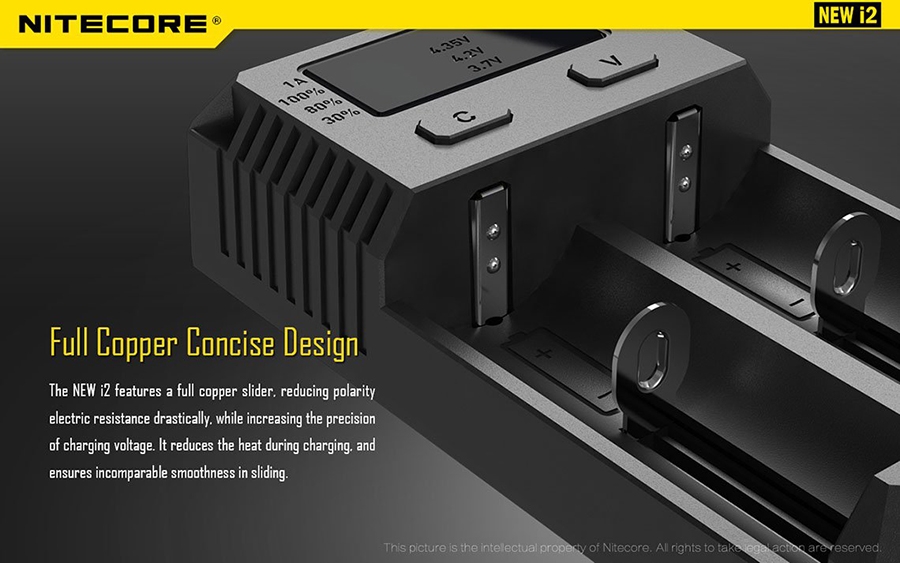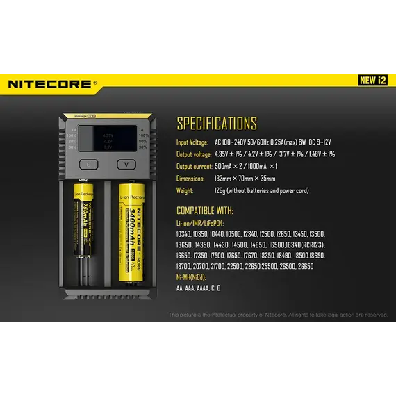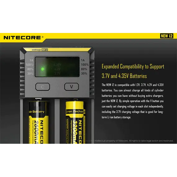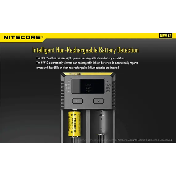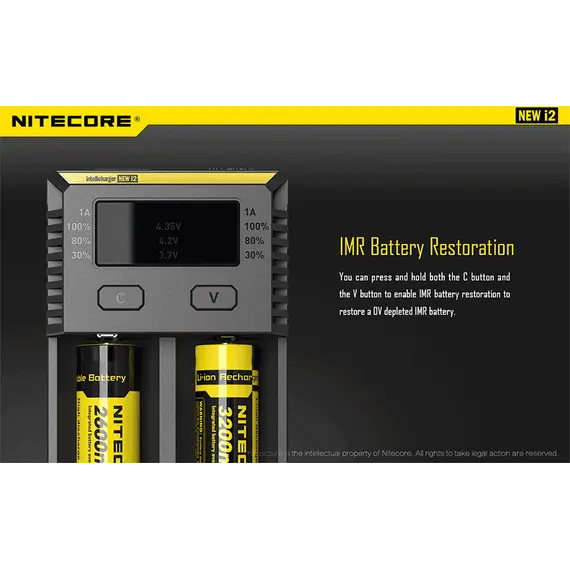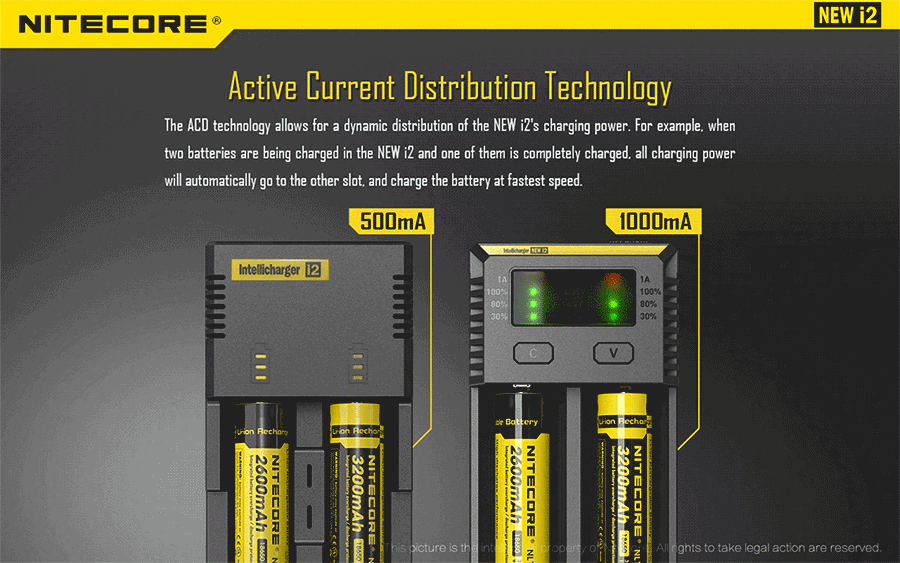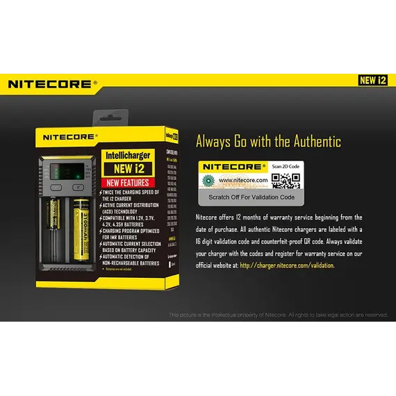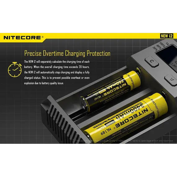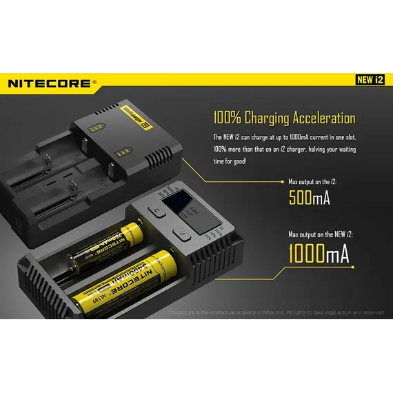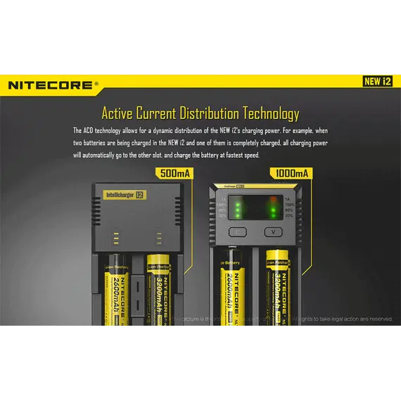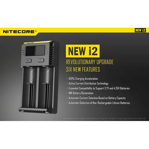 Επαναστατική αναβάθμιση του γνωστού φορτιστή Nitecore i2 έξι σημείων. Ταχύτερη φόρτιση, Τεχνολογία ενεργής διανομής του ρεύματος, Εκτεταμένη συμβτότητα για την υποστήριξη περισσότερων μπαταριών, Ανάκτηση μπαταριών IMR, Αυτόματη επιλογή του ρεύματος φόρτισης ανάλογα με την χωρητικότητα της μπαταρίας, Αυτόματη αναγνώριση των Μη-επαναφορτιζόμενων μπαταριών Λιθίου.