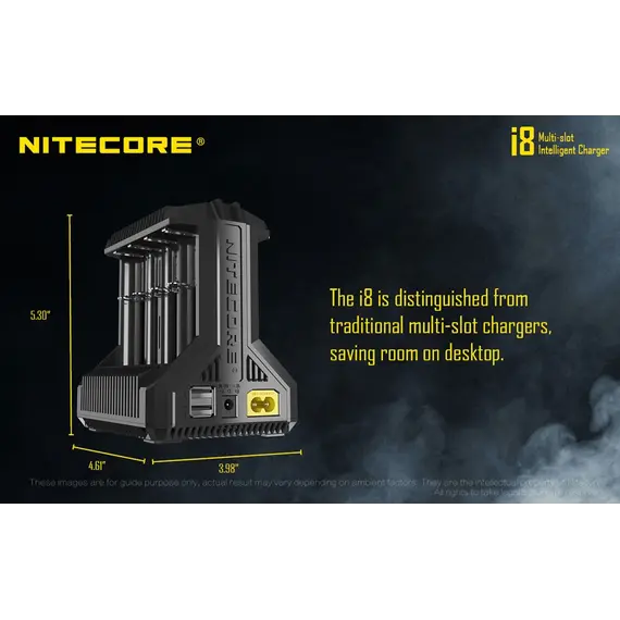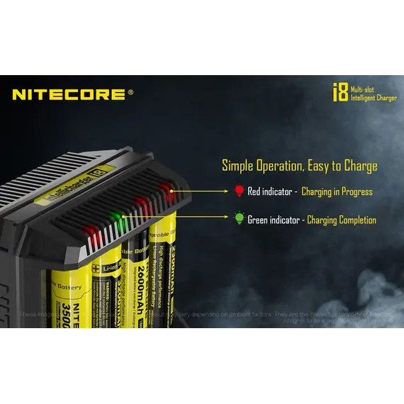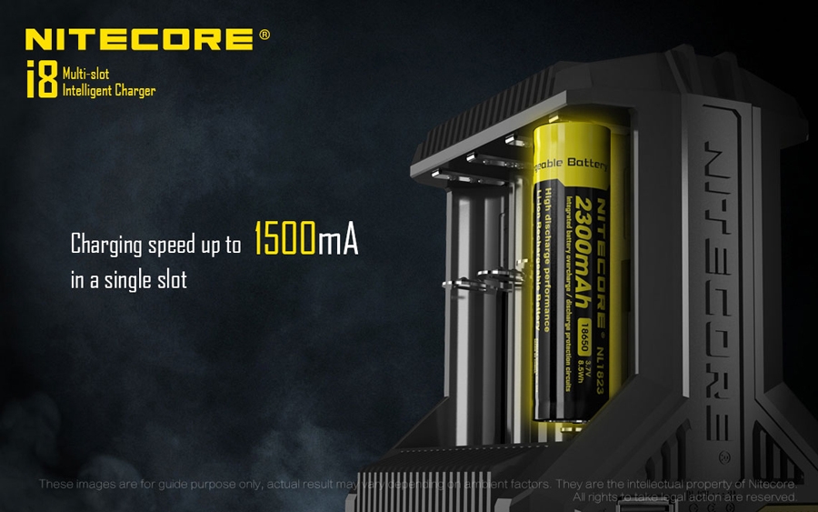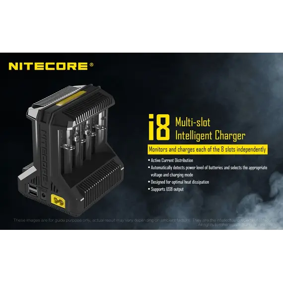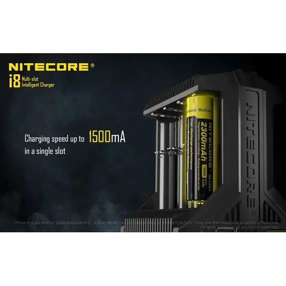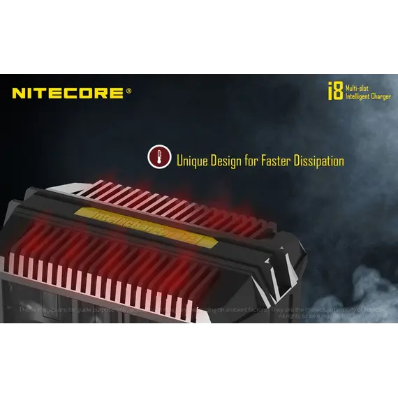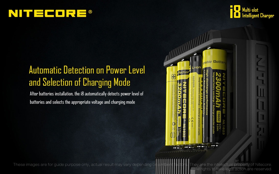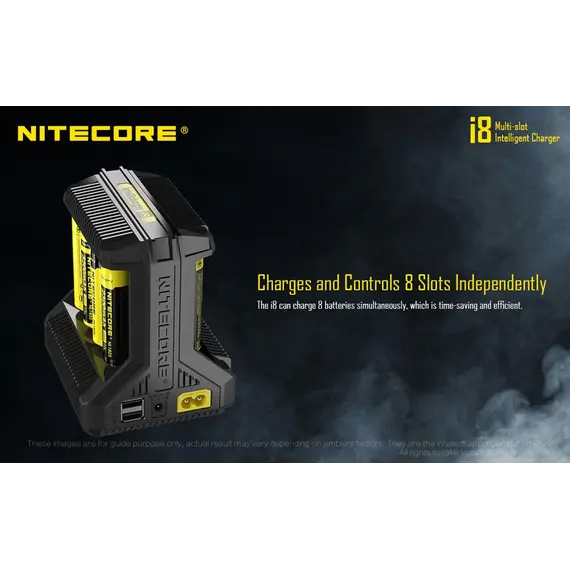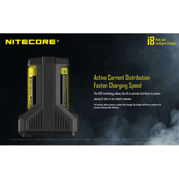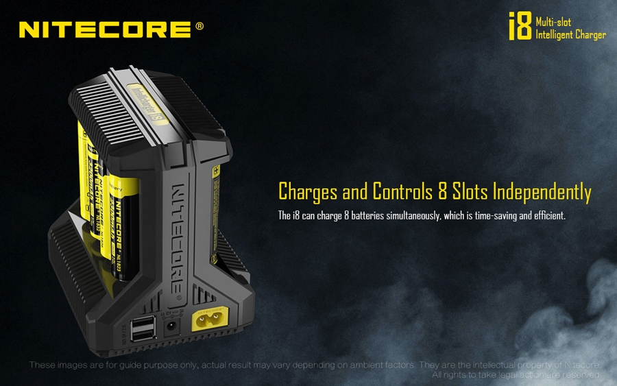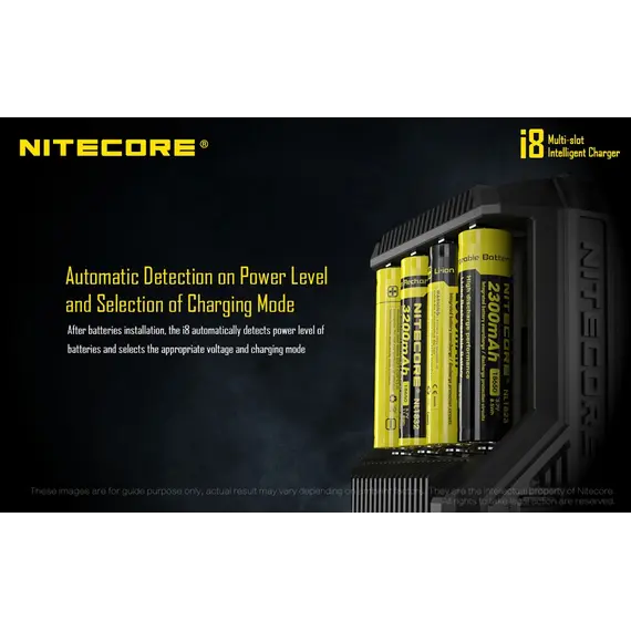 Φορτιστής NITECORE της σειράς "Intelligent", παρακολουθεί και φορτίζει κάθε μία από τις 8 θέσεις ανεξάρτητα, ανιχνεύει αυτόματα το επίπεδο ενέργειας της μπαταρίας και επιλέγει τη απαραίτητη τάση και πρόγραμμα φόρτισης.