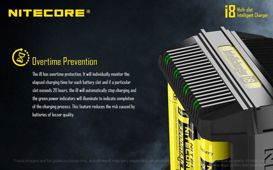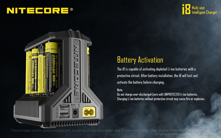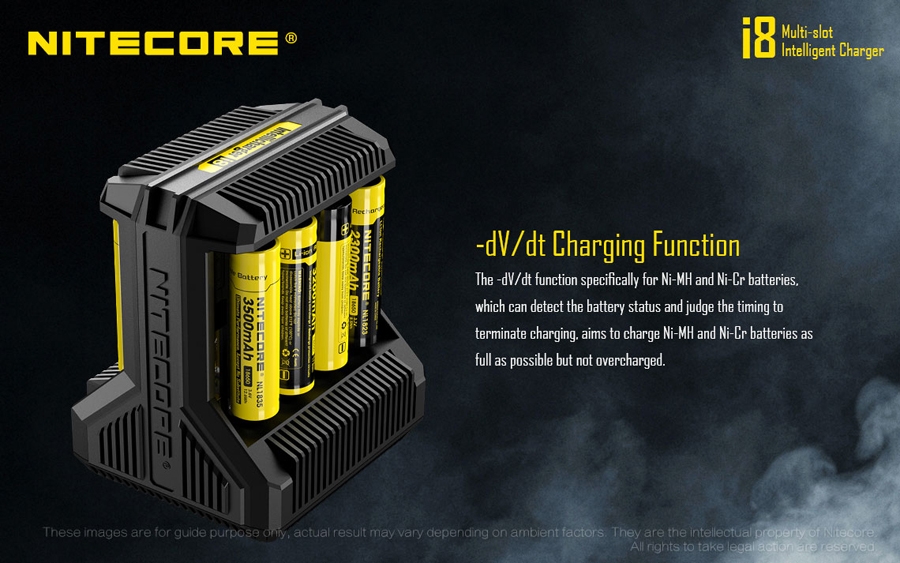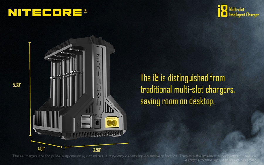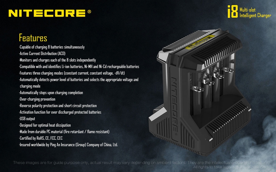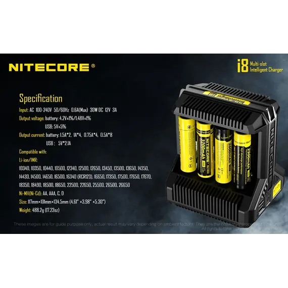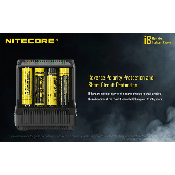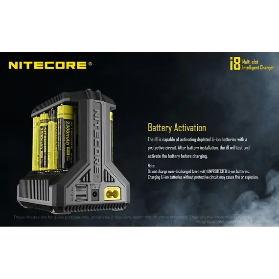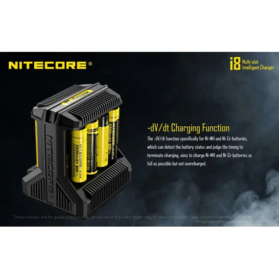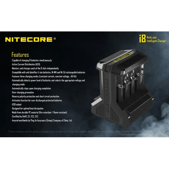 Φορτιστής NITECORE της σειράς "Intelligent", παρακολουθεί και φορτίζει κάθε μία από τις 8 θέσεις ανεξάρτητα, ανιχνεύει αυτόματα το επίπεδο ενέργειας της μπαταρίας και επιλέγει τη απαραίτητη τάση και πρόγραμμα φόρτισης.
