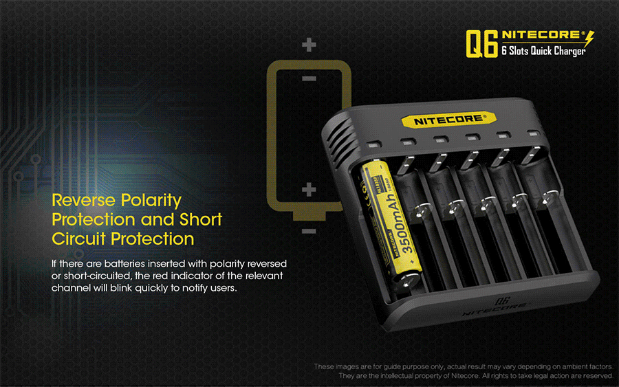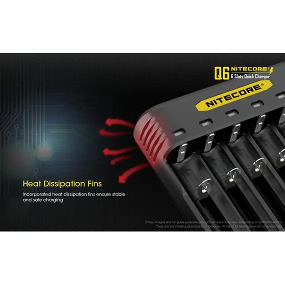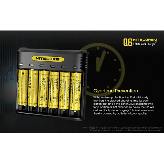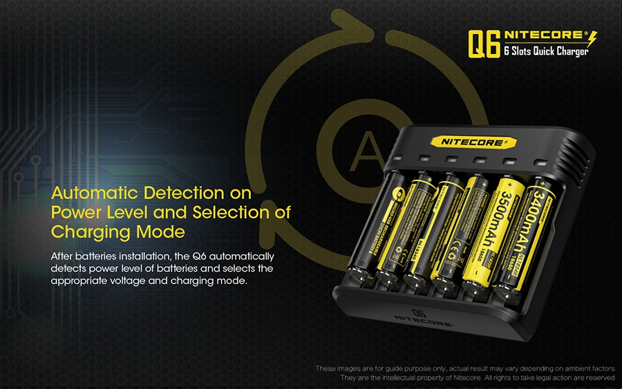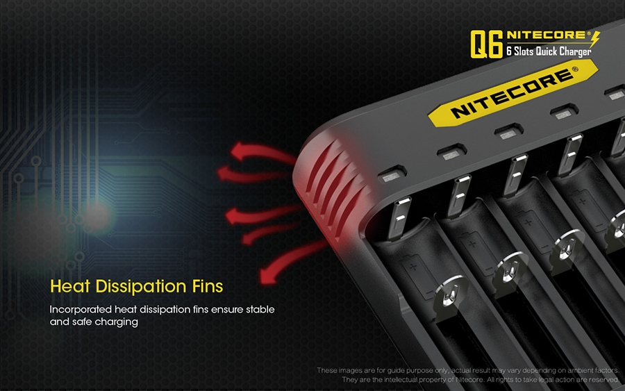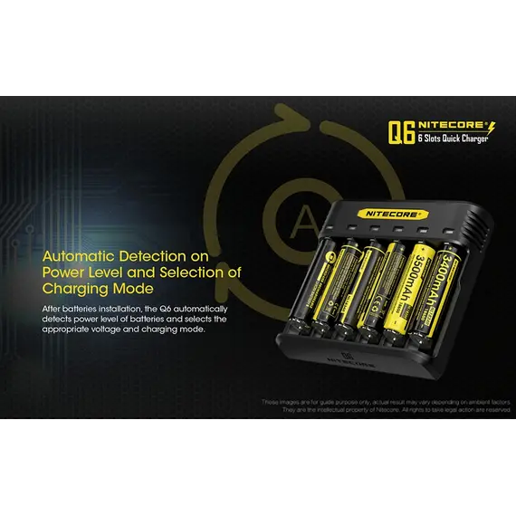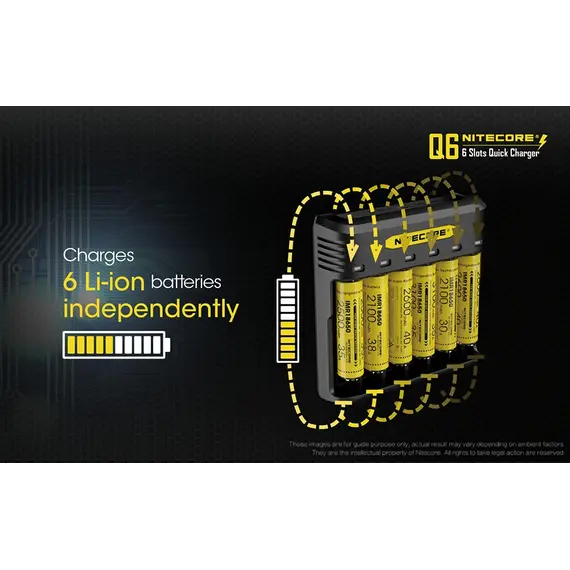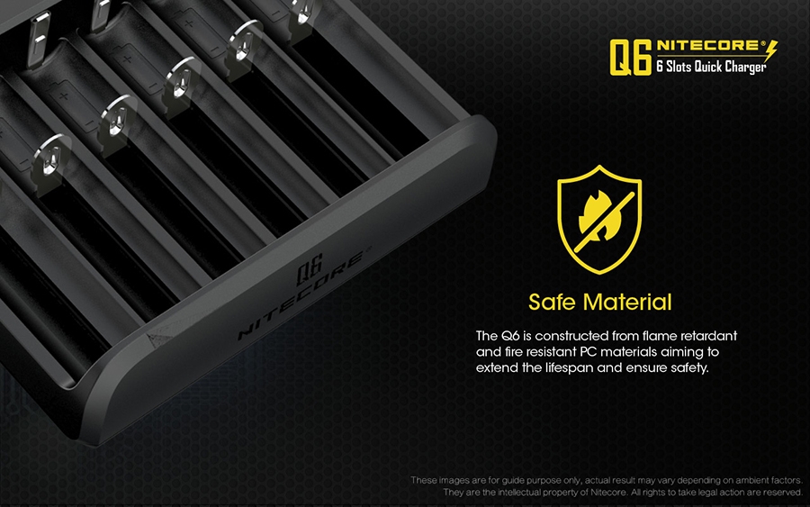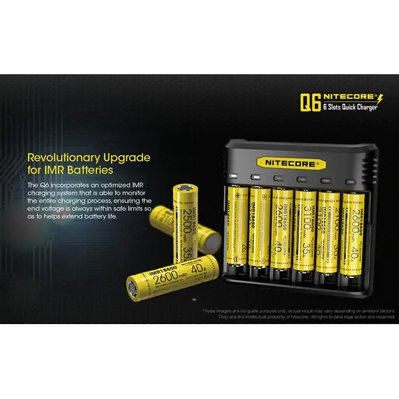 Οι 6 μπαταρίες Li-ion φορτίζουν ανεξάρτητα. Το βελτιωμένο σύστημα φόρτισης για μπαταρίες IMR είναι ικανό να ελέγχει όλη τη διαδικασία φόρτισης, εξασφαλίζοντας ότι η τάση φόρτισης είναι πάντα μέσα στα ασφαλή όρια έτσι ώστε να μεγαλώνει η διάρκεια ζωής των μπαταριών. Συμβατός με αντάπτορα αυτοκινήτου . Ανιχνεύει αυτόματα το επίπεδο ενέργειας και επιλέγει την μέθοδο φόρτισης. Διαθέτει προστασία ανάποδης πολικότητας και βραχυκυκλώματος.