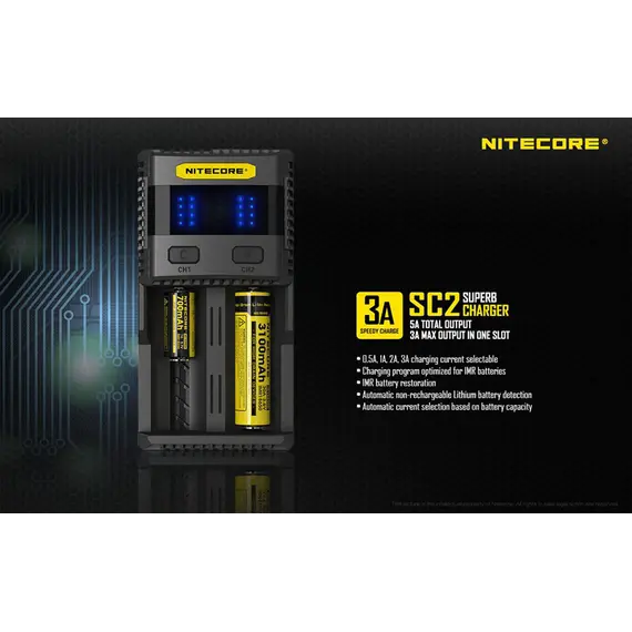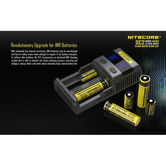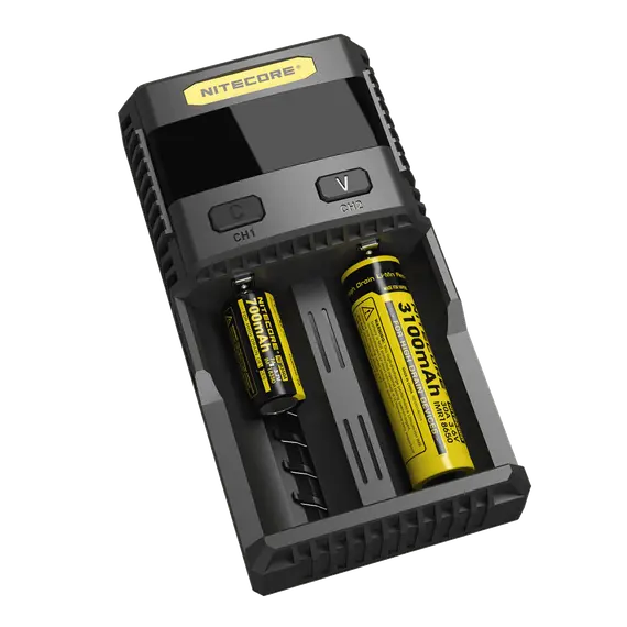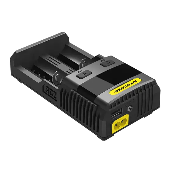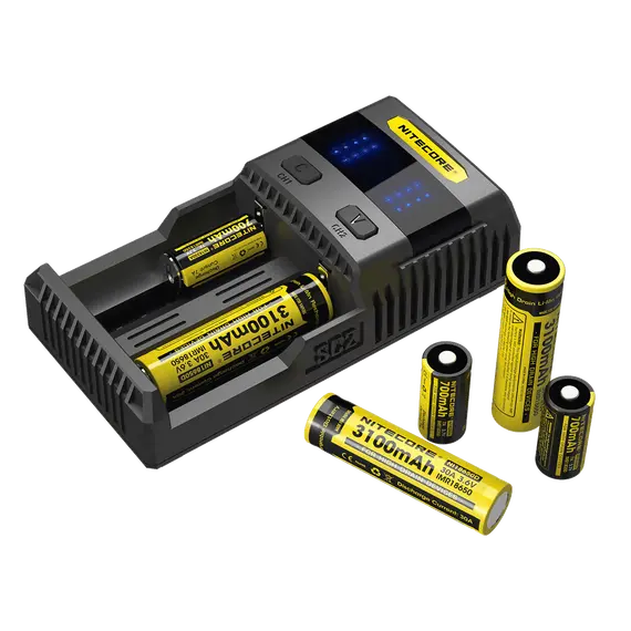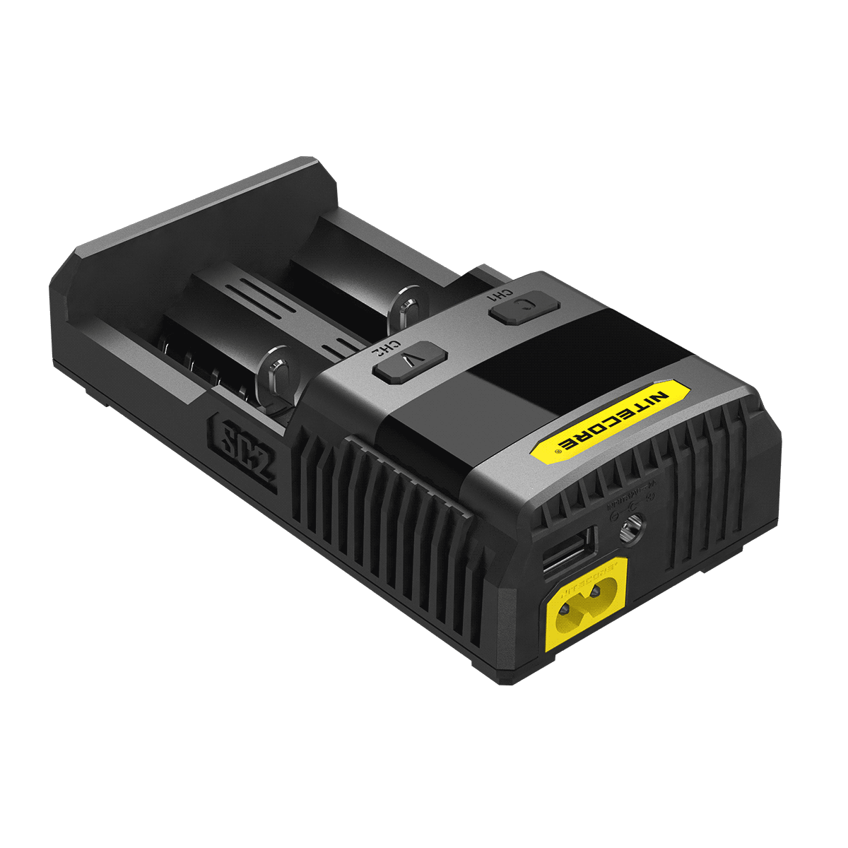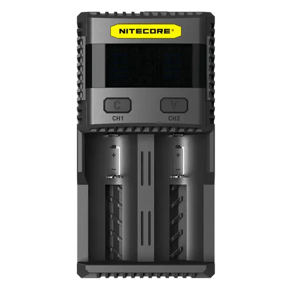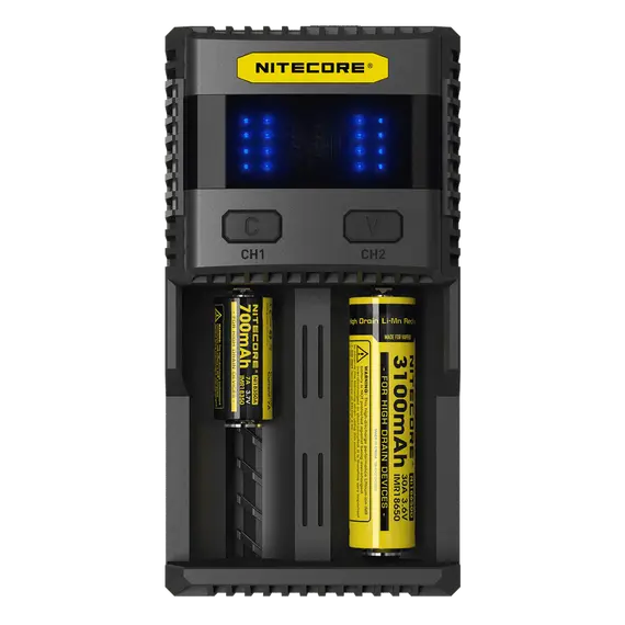 Νέος, ποιοτικός, ΤΑΧΥ-φορτιστής από την Nitecore. Δυνατότητα επιλογής του ρεύματος φόρτισης (0.5Α, 1Α, 2Α, 3Α), πρόγραμμα φόρτισης βελτιωμένο για μπαταρίες IMR, Δυνατότητα αποκατάστασης μπαταρίας IMR, αυτόματη αναγνώριση μη-επαναφορτιζόμενων μπαταριών λιθίου, αυτόματη επιλογή του ρεύματος φόρτισης ανάλογα με την χωρητικότητα της μπαταρίας. Μπορεί να φορτίσει μία μπαταρία 3000mAh μέσα σε 1,5 ώρες ! Μπορεί να φορτίσει μία εξωτερική συσκευή με USB με μέγιστο ρεύμα 2100mA (όταν η θέση 2 είναι κενή).
