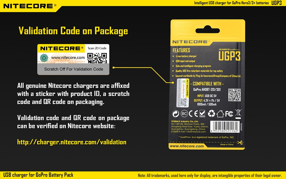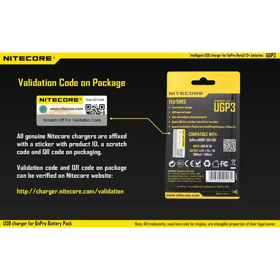 Προσοχή! κάθε γνήσιος φορτιστής NITECORE διαθέτει στη συσκευασία του ειδικό