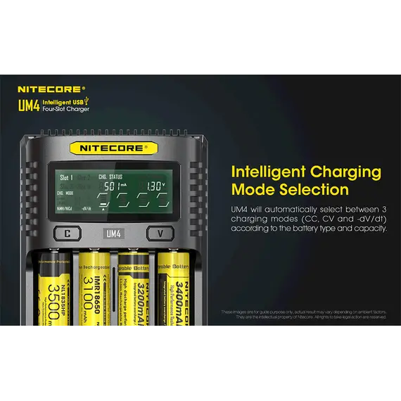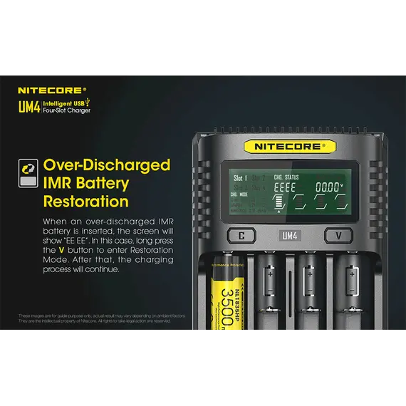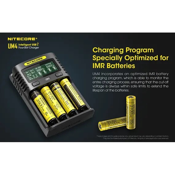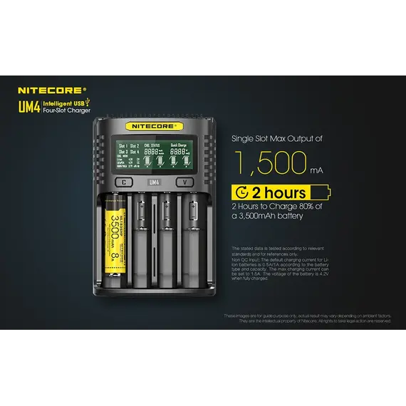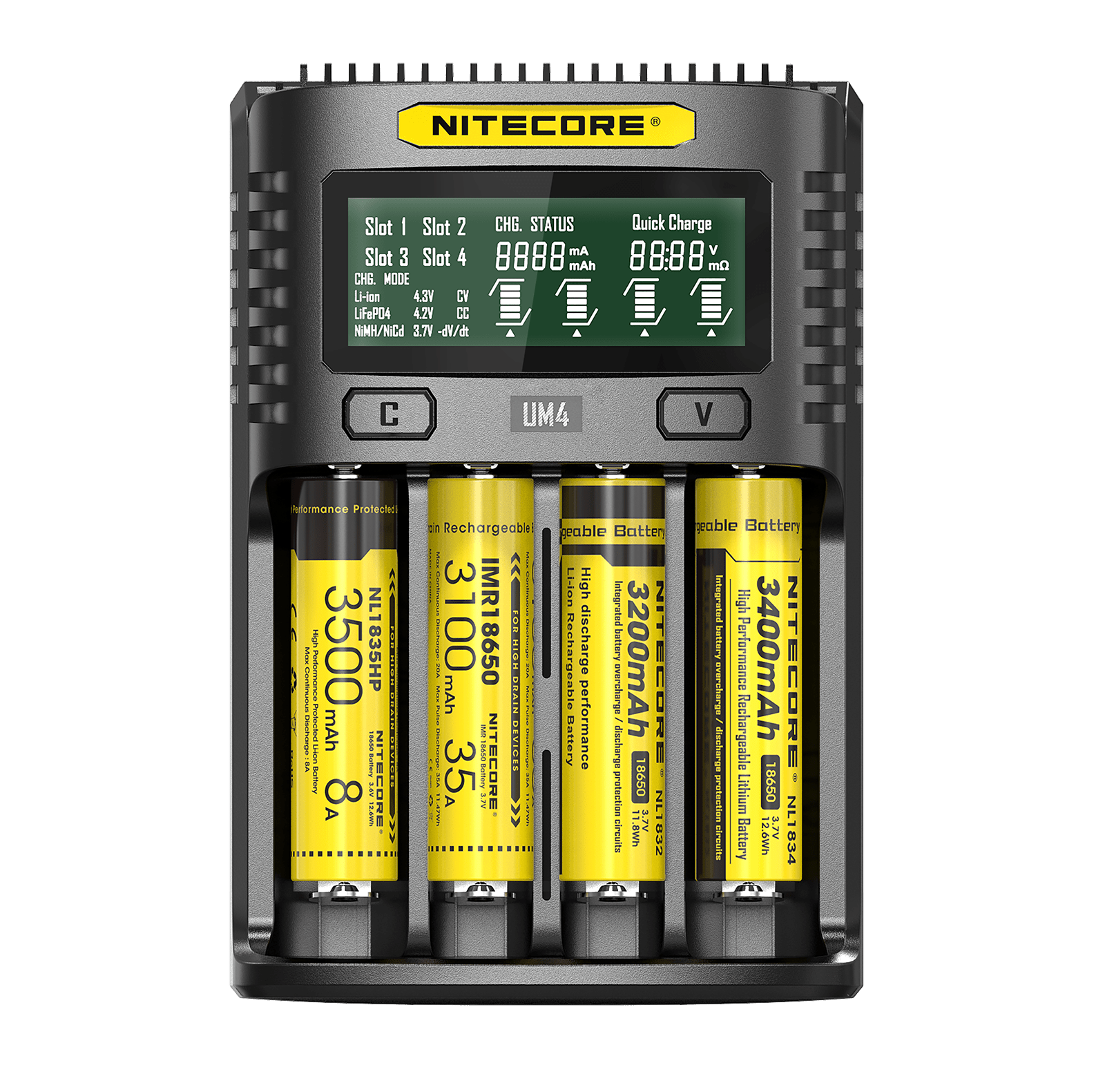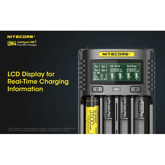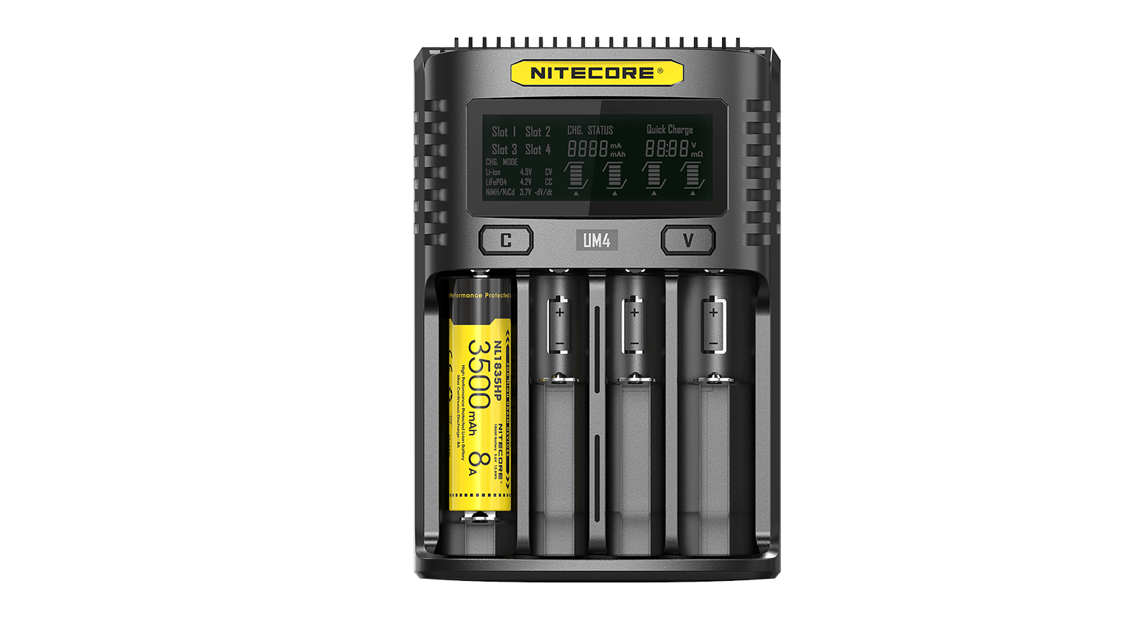 Ένας έξυπνος φορτιστής τεσσάρων θέσεων με δυνατότητα γρήγορης φόρτισης (QC) , συνολικό μέγιστο ρεύμα φόρτισης τα 3000mA (QC) και μέγιστο ρεύμα φόρτισης σε μία μόνο θέση που μπορεί να φθάσει τα 1500mA Ψηφιακή οθόνη υγρών κρυστάλλων (LCD) για παρουσίαση σε πραγματικό χρόνο πληροφοριών της φόρτισης. Φόρτιση από θύρα USB, τον καθιστά ιδανικό φορτιστή για εξωτερικές δραστηριότητες. Διαθέτει ένα βελτιωμένο πρόγραμμα φόρτισης για μπαταρίας IMR. Ανιχνεύει την εσωτερική αντίσταση και την υγεία της μπαταρίας. Eπιλέγει αυτόματα ανάμεσα σε τρία προγράμματα (CC, CV and -dV / dt) σύμφωνα με τον τύπο και την χωρητικότητα των μπαταριών. Οι παράμετροι φόρτισης μπορούν να ρυθμιστούν χειροκίνητα για να ικανοποιήσουν διαφορετικές ανάγκες. Είναι συμβατός με διάφορες εξωτερικές πηγές ενέργειας όπως USB αντάπτορες, Power Banks, Solar Panels κλπ Έχει την δυνατότητα να αποκαταστήσει υπερ-αποφορτισμένες μπαταρίες IMR . Έχει την δυνατότητα να ενεργοποιήσει υπερ-αποφορτισμένες μπαταρίες ιόντων λιθίου Li-ion. Θα ελέγξει και θα ενεργοποιήσει πριν ξεκινήσει την φόρτιση. Εάν η μπαταρία είναι κατεστραμμένη στην οθόνη θα εμφανιστεί το μήνυμα "ΕΕ ΕΕ". Διαθέτει προστασία ανάποδης πολικότητας και βραχυκυκλώματος. Εάν δεν υπάρξει καμία ενέργεια στα κομβία του φορτιστή μέσα σε 10 λεπτά, η οθόνη θα σβήσει για να εξοικονομήσει ενέργεια. Είναι κατασκευασμένος από ανθεκτικά πολυκαρβονικά υλικά, επιβραδυντικά της φωτιάς. Ενσωματώνει έξυπνο σύστημα ρύθμισης της θερμοκρασίας που είναι σχεδιασμένο να τον προστατεύει από υπερθέρμανση. Τα μοναδικά πτερύγια ψύξης έχουν σχεδιαστεί για εξαιρετική απόδοση ψύξης