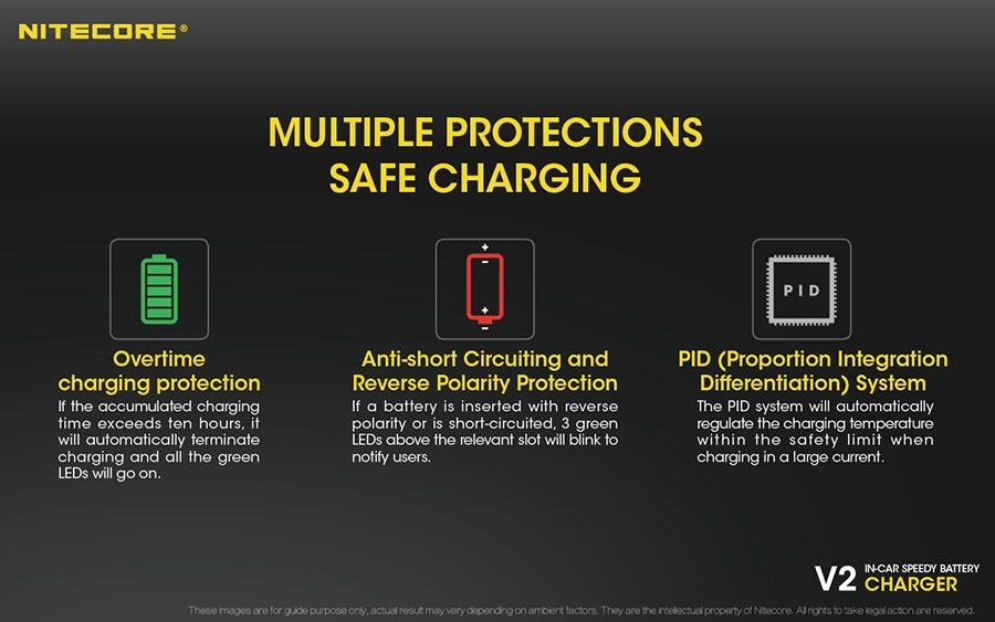 - Αυτόματα ανιχνεύει μπαταρίες με διαφορετική χωρητικότητα και επιλέγει το αντίστοιχο μέγιστο ρεύμα για την φόρτιση τους.