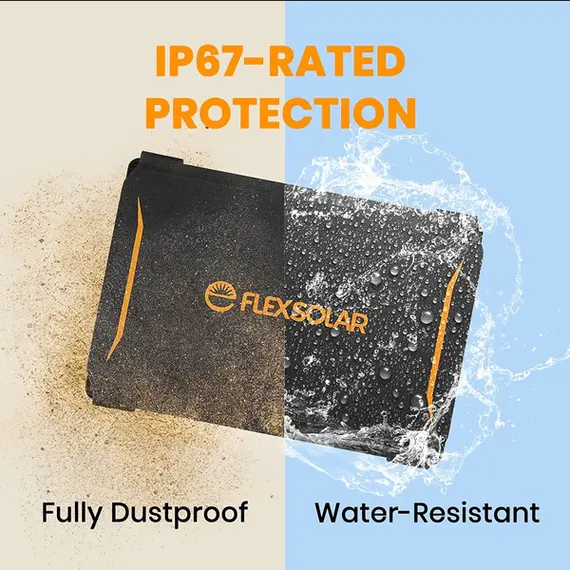 Αδιάβροχο με πιστοποίηση IP67 Θερμοκρασία λειτουργίας -20°C εώς 65°C To φορητό Ηλιακό Πάνελ Flex Solar 10W είναι κατασκευασμένο απο μονοκρυσταλικό πυρίτιο, με αποτέλεσμα να παράγει ενέργεια ακόμα και τις μέρες με συννεφιά.