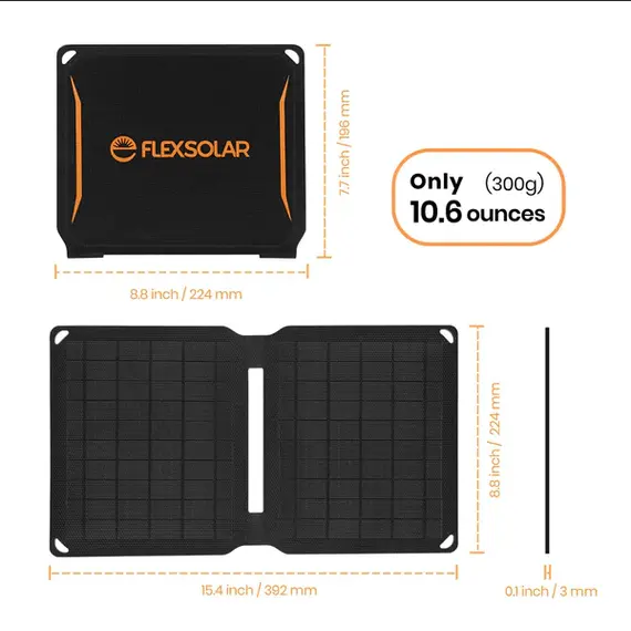 Flex Solar Ηλιακό Πάνελ 10 Watt φορητό Φορητό Πάνελ 10 Watt συνολικού βάρους 300 Γραμμάρια Κορυφαία απόδοση κυψελών 24%.