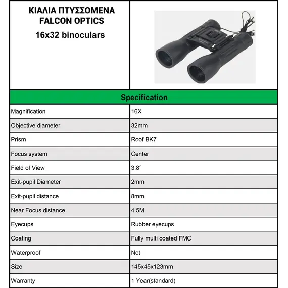 ΚΙΑΛΙΑ FALCON Optics Compact 16×32