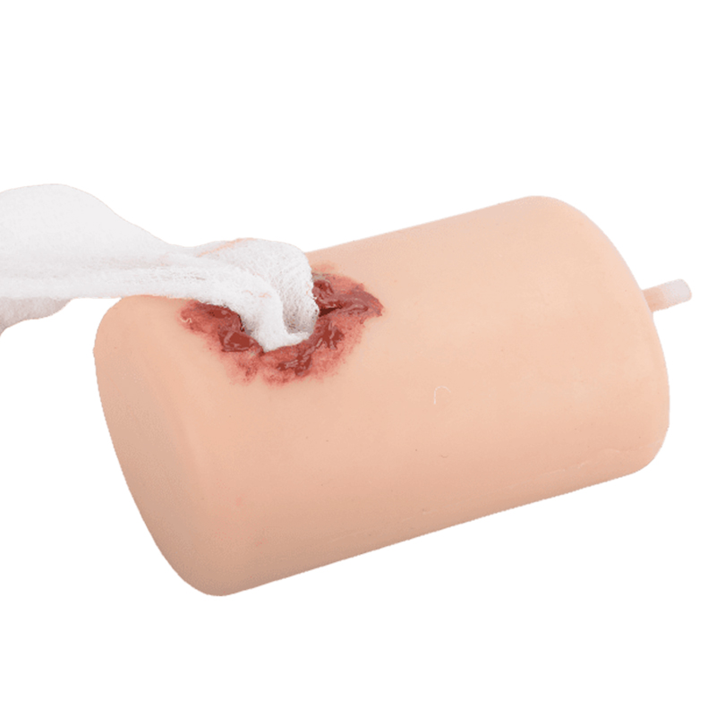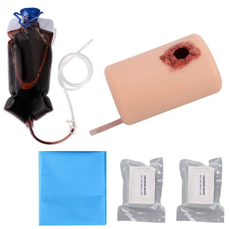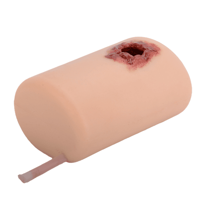 - Υψηλή προσομοίωση τραύματος από πυροβολισμό: Το ομοίωμα είναι ένα εξαιρετικά ρεαλιστικό τραύμα από σφαίρα. Προσομοιάζει σε μεγάλο βαθμό ένα πραγματικό ανθρώπινο τραύμα από πυροβολισμό. Μπορεί να στερεωθεί σε οποιαδήποτε επιφάνεια και να γεμίσει με εκπαιδευτικό αίμα το οποίο θα ενισχύσει τον ρεαλισμό της φροντίδας και της εκπαίδευσης της διακοπής αιμορραγίας ενός τραύματος.