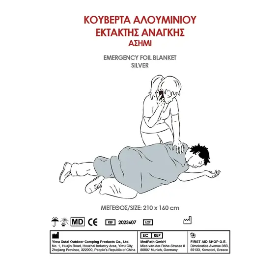 Αυτή η ειδική θερμική κουβέρτα διάσωσης διαθέτει μία ασημένια πλευρά, σχεδιασμένη να τοποθετείται σε επαφή με το σώμα, συμβάλλοντας αποτελεσματικά στην καταπολέμηση της υποθερμίας. Ιδανική για περιπτώσεις έκτακτης ανάγκης, προσφέρει βασική θερμική προστασία σε κρίσιμες στιγμές.