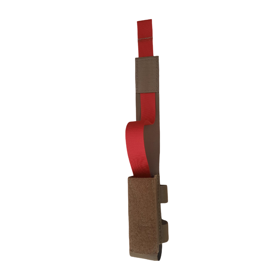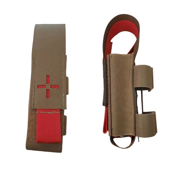 Μπορεί να τοποθετηθεί τόσο κάθετα (PALS/MOLLE) όσο και οριζόντια (One Wrap) και σε ζώνη, προσφέροντας ευελιξία προσαρμογής σε διάφορους τύπους εξοπλισμού. Τα πλευρικά ελαστικά μέρη εξασφαλίζουν σταθερή εφαρμογή, ενώ ο κόκκινος ιμάντας επιτρέπει την ταχεία και ελεγχόμενη εξαγωγή του tourniquet χωρίς τον κίνδυνο να πέσει στο έδαφος. Με το τράβηγμα αυτού του ιμάντα, αυτόματα το TQ εξέρχεται χωρίς να πέφτει τόσο όσο να μπορεί να το αρπάξει ο χρήστης και να το πάρει στο χέρι του σε ελάχιστο χρόνο. Η κίνηση αυτή μπορεί να υλοποιηθεί και με το ένα οποιοδήποτε χέρι (αριστερό ή δεξί), σε περίπτωση που λόγω τραυματισμού ή άλλου λόγου δεν υπάρχει δυνατότητα χρήσης του άλλου χεριού.