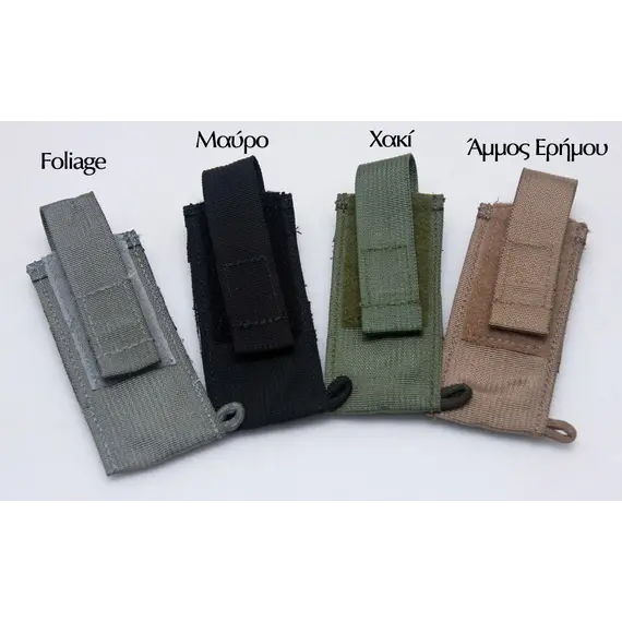 Διαθέτουν ειδικό σύστημα τοποθέτησης σε επιχειρησιακό σάκο ή γιλέκο συμβατό με το σύστημα molle. Στο κάτω μέρος υπάρχει θηλιά από ανθεκτικό κορδόνι.