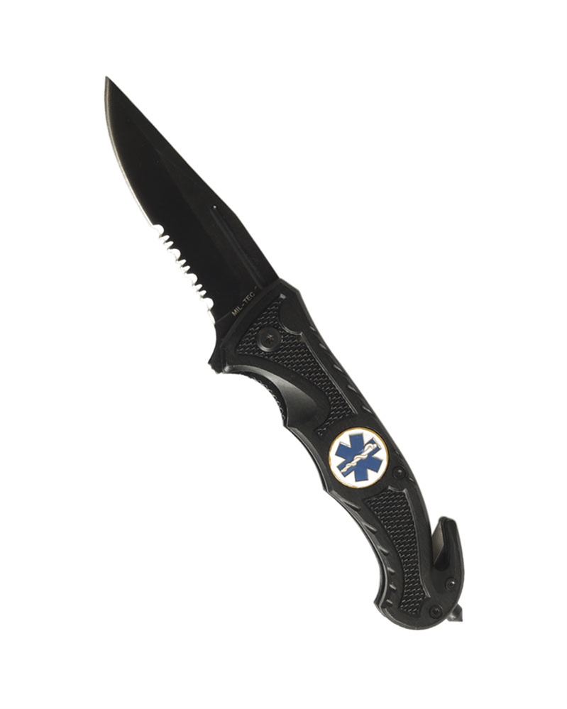 Διασωστικό μαχαίρι από την εταιρία MIL-TEC. Ιδανικό για το παραϊατρικό προσωπικό καθώς στην χειρολαβή του έχει το αντίστοιχο σήμα. Στο πίσω μέρος διαθέτη κλιπ ζώνης έτσι ώστε να το κρεμάτε στο ιδανικό σημείο για εσάς για εύκολη και γρήγορη πρόσβαση. Διαθέτει κόφτη ζώνης ασφαλείας και θραύστη κρυστάλλων στην άκρη της χειρολαβής για τις πραγματικές καταστάσεις έκτακτης ανάγκης.