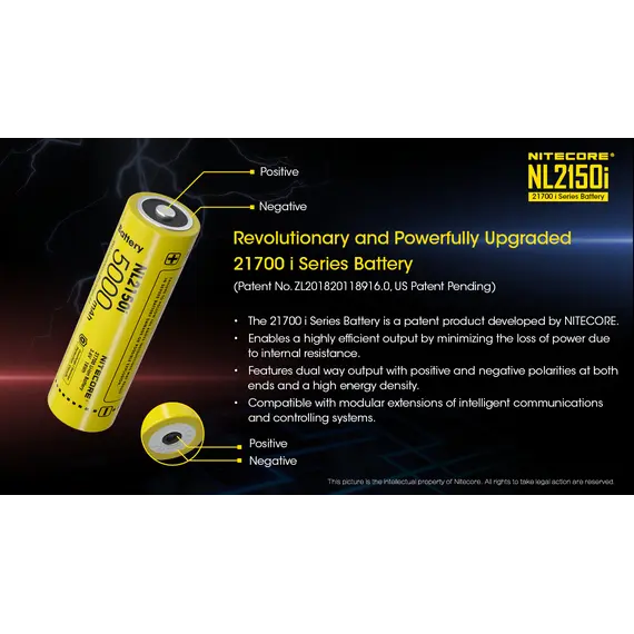 - Οι μπαταρίες 21700i είναι ένα προϊόν ευρεσιτεχνίας που αναπτύχθηκε από την NITECORE