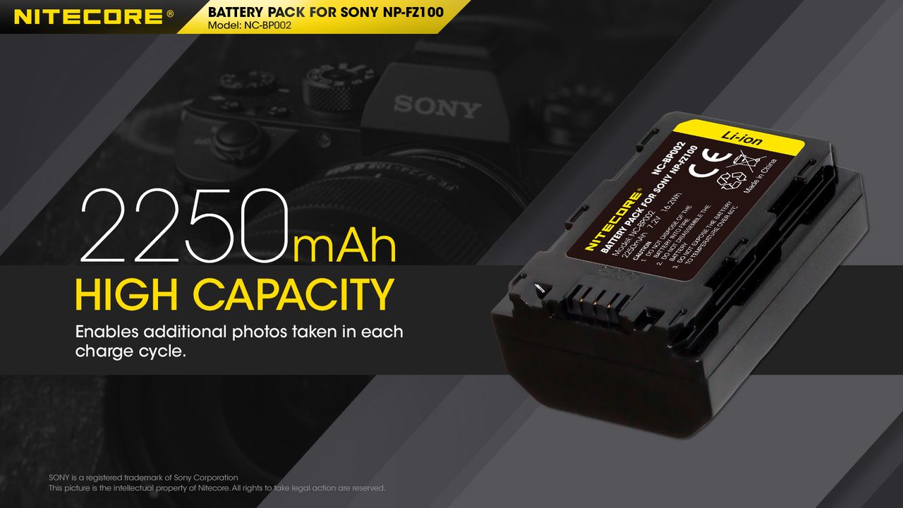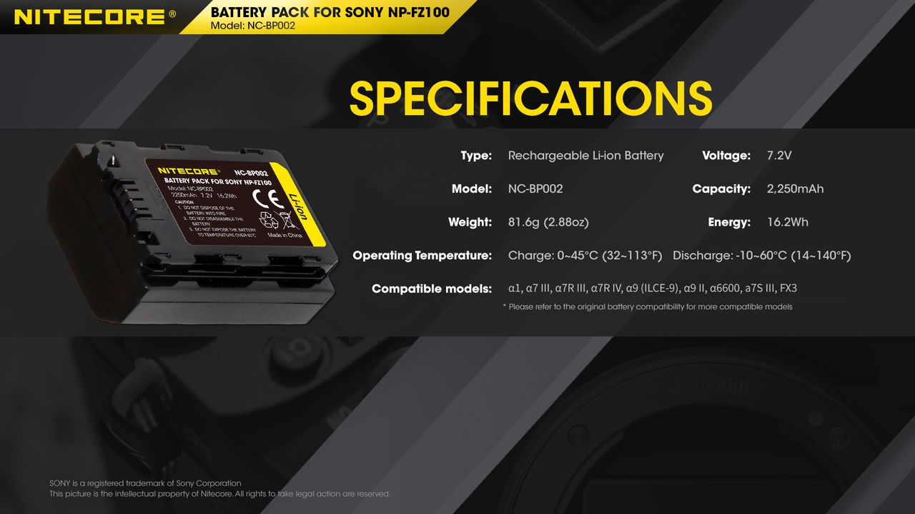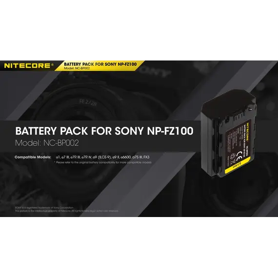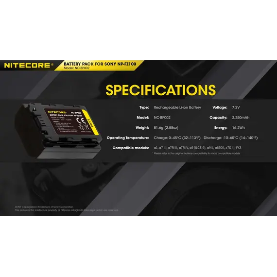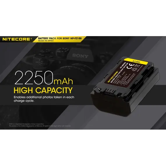 ΜΠΑΤΑΡΙΑ NITECORE for SONY NP-FZ100, 7.2V , 2250mAh, 16.2Wh