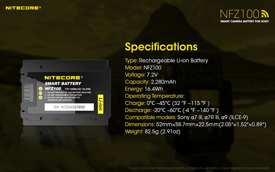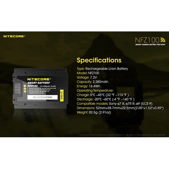 ΜΠΑΤΑΡΙΑ NITECORE NFZ100 , SMART CAMERA BATTERY FOR SONY