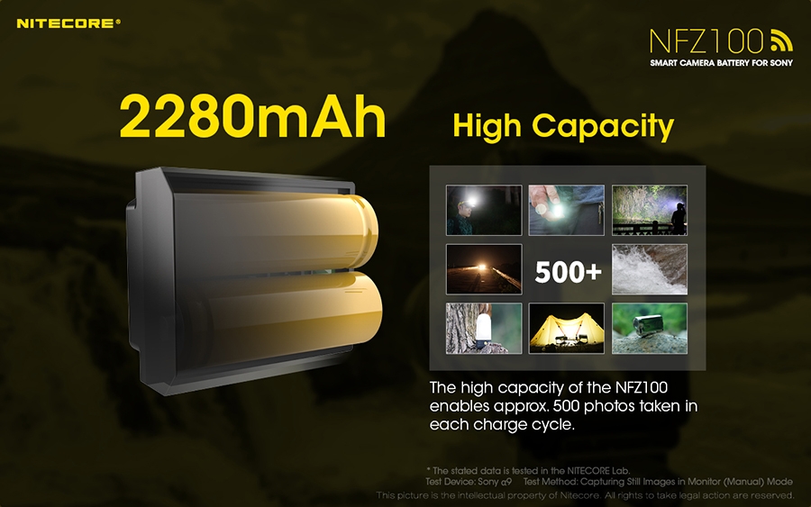 Μεγάλη χωρητικότητα 2280mAh για την NFZ100 επιτρέπει την λήψη 500 φωτογραφιών περίπου για κάθε κύκλο φόρτισης.