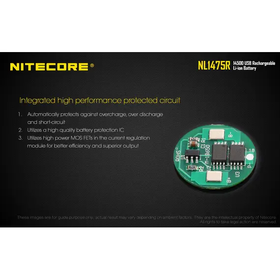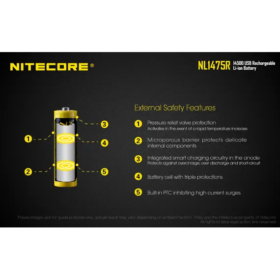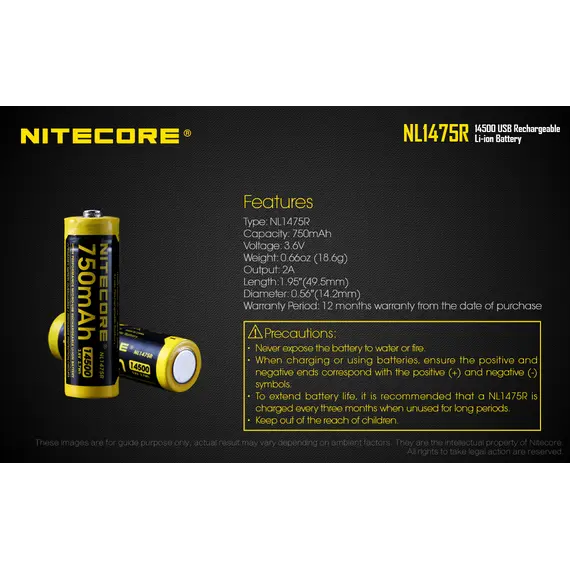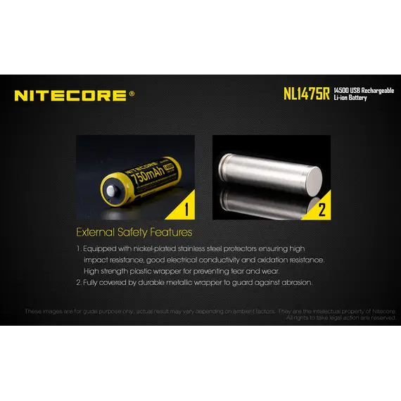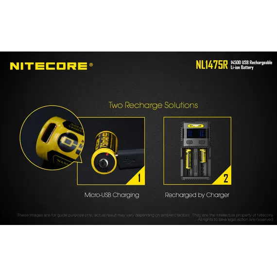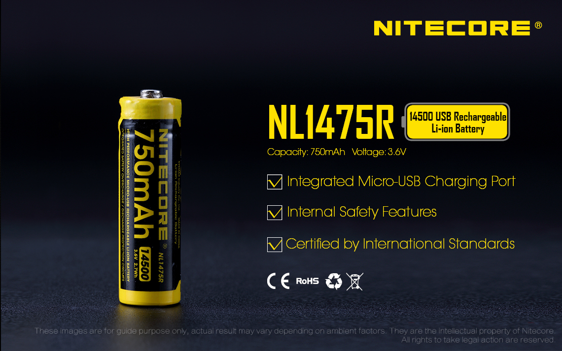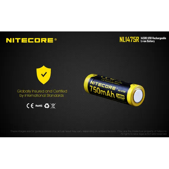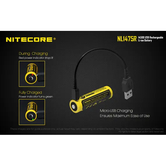 01. Επαναφορτιζόμενη, μέσω θύρας USB, μπαταρία Ιόντων Λιθίου (Li-ion) NITECORE NL1475R (14500)