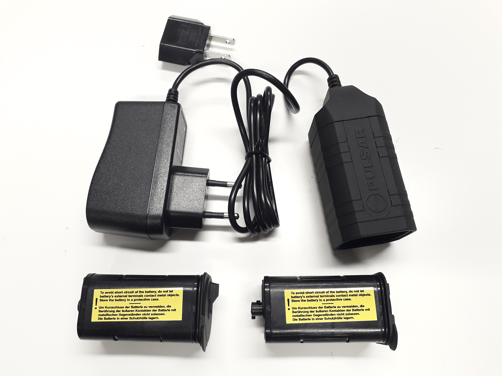 Πακέτο δύο (2) επαναφορτιζόμενων μπαταριών με φορτιστή. Ειδικά σχεδιασμένες για συσκευές Νυχτερινής παρατήρησης και θερμικής απεικόνισης PULSAR.