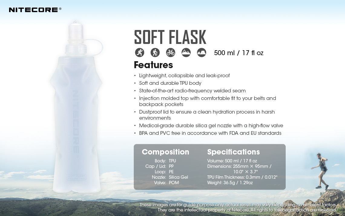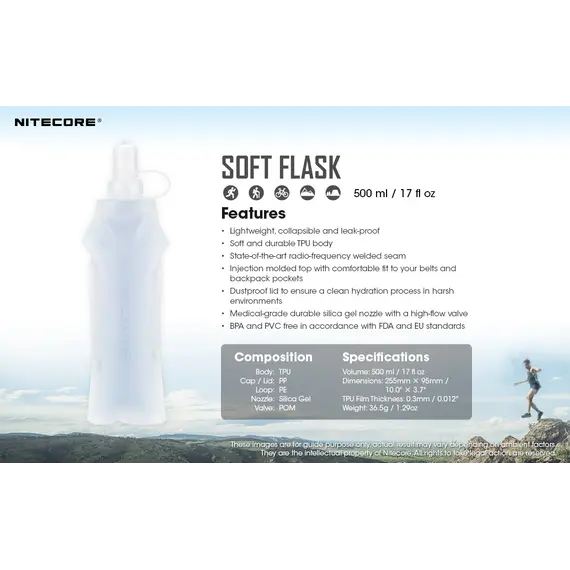 Μαλακό φλασκί χωρητικότητας 500ml και διαστάσεων 255mm x 95mm πάχους 0,3mm βάρος 36,5g
