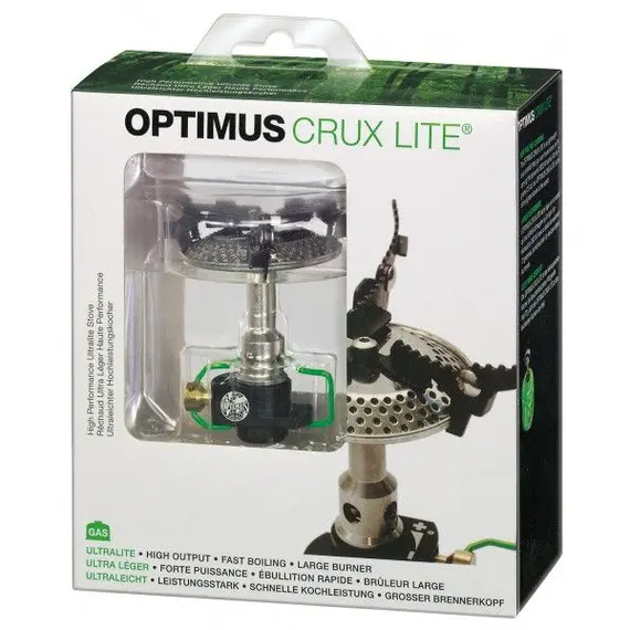 Πατήστε εδώ για να δείτε τα φιαλίδια γκαζιού). Το μεγάλο πλεονέκτημα των βιδωτών φιαλιδίων είναι ότι μπορεί να αφαιρεθούν χωρίς να έχουν αδειάσει και να επανατοποθετηθούν όταν χρειαστεί. Αυτό κάνει τη μεταφορά τους πολύ πιο εύκολη και ασφαλή. Η ανάφλεξη της εστίας είναι χειροκίνητη. Η Optimus Crux Lite συνοδεύεται από θήκη μεταφοράς.