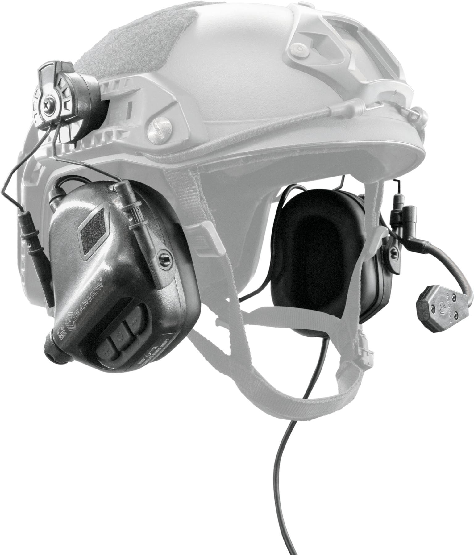 Το Μοντέλο EARMOR M32H βασίζεται στις ηλεκτρονικές ωτοασπίδες EARMOR M32 αλλά συνοδεύεται από ειδικές βάσεις για προσαρμογή σε κράνος με rails ARC.