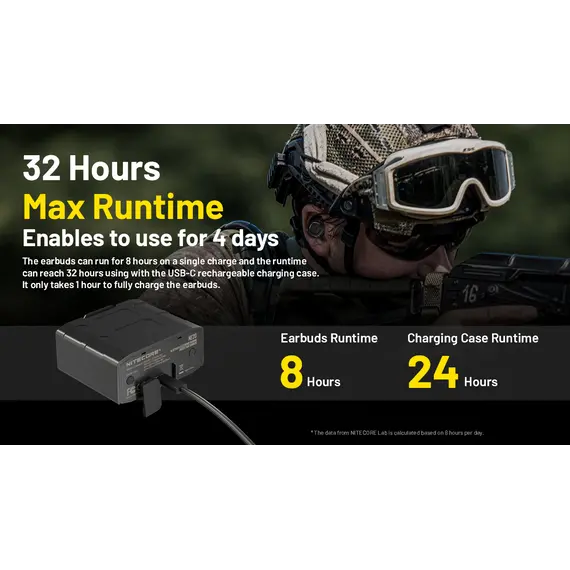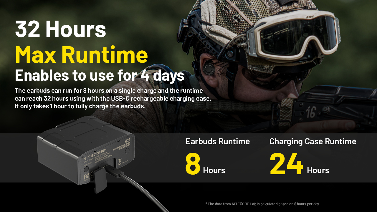 * Τα παραπάνω αναγραφόμενα δεδομένα είναι από τα εργαστήρια της NITECORE και βασίζονται σε χρήση 8 ωρών ανά ημέρα.