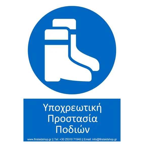Πινακίδα Σήμανσης Υποχρεωτικής Προστασίας Ποδιών - PVC Κάρτα 20x15 cm
