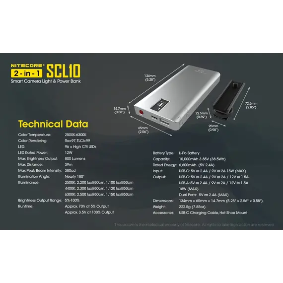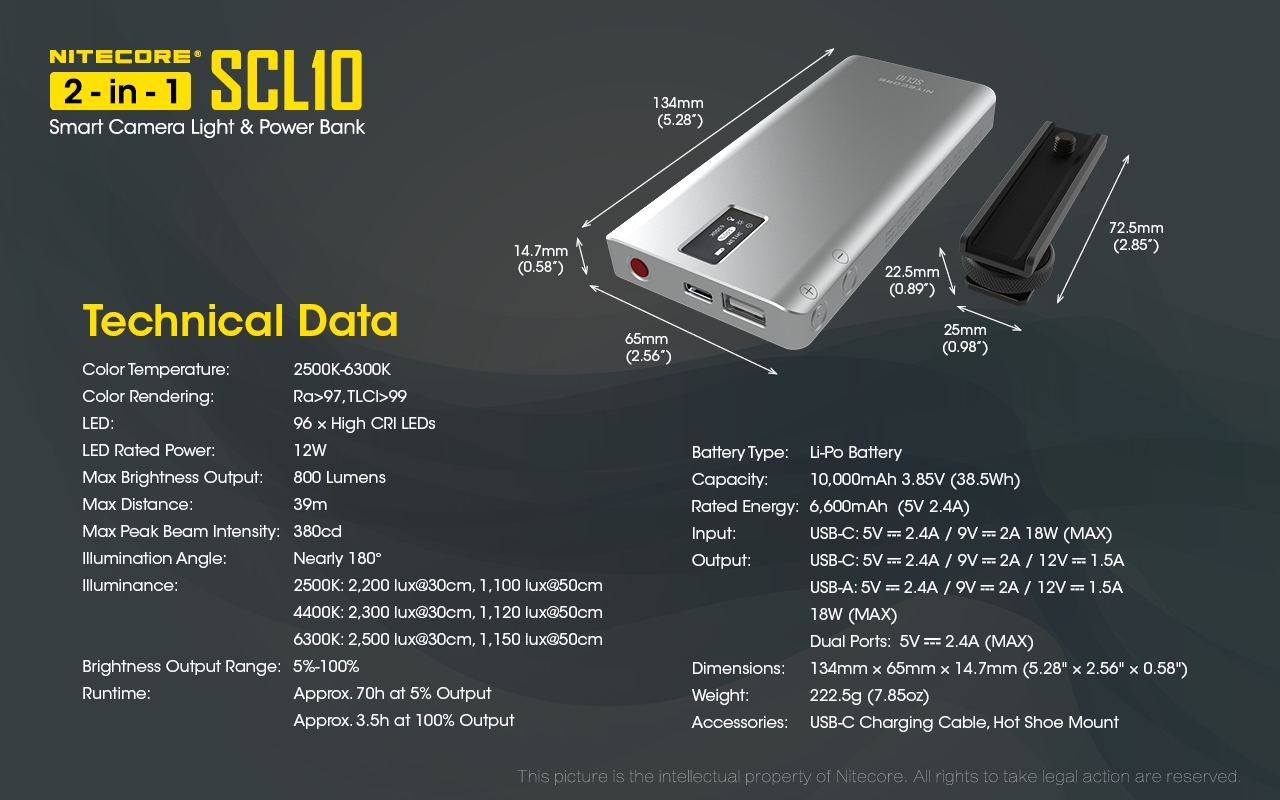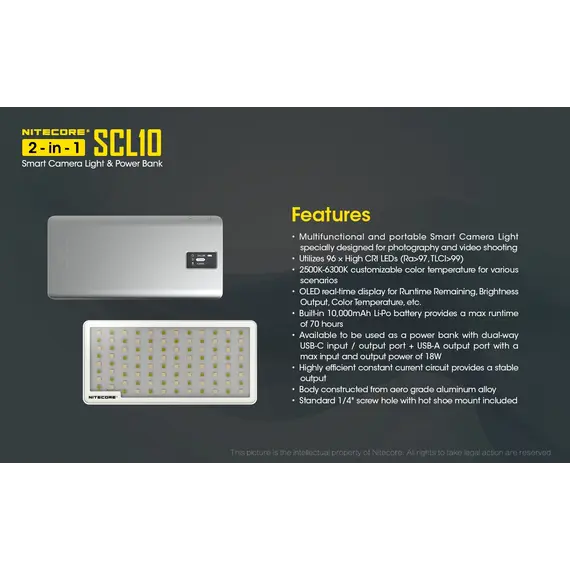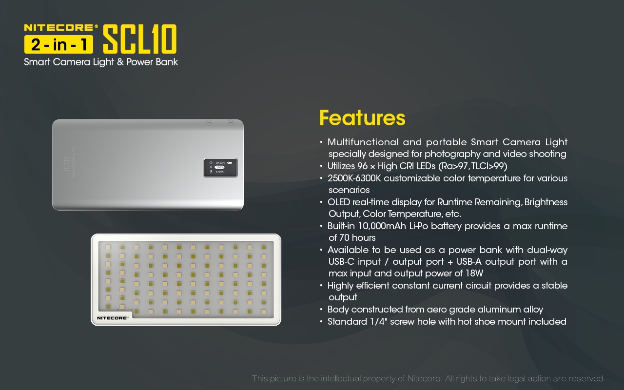 POWER BANK + CAMERA LIGHT 2in1 NITECORE SCL10
