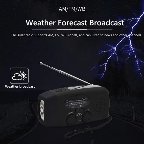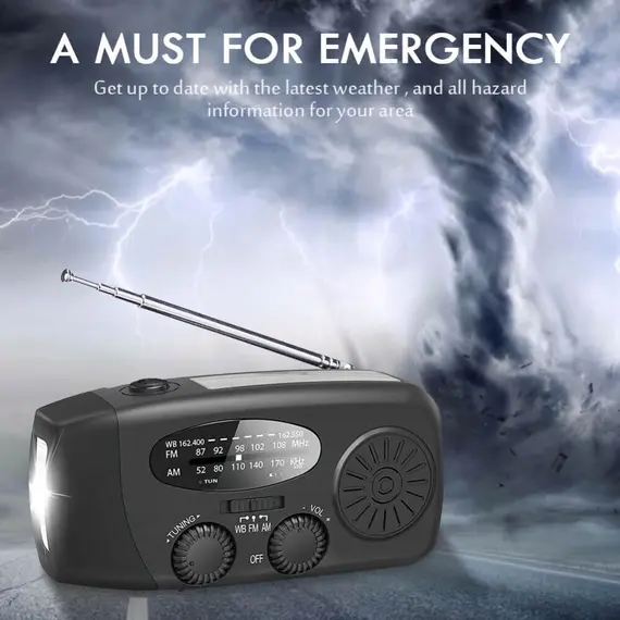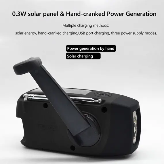 Ραδιόφωνο με φακό, δυναμό και ηλιακό πάνελ αδιάβροχο με εργονομική λαβή.