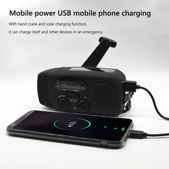 - Το ραδιόφωνο φορτίζει με 3 τρόπους, Ηλιακό πάνελ, θύρα Usb, χειροκίνητης μανιβέλας.