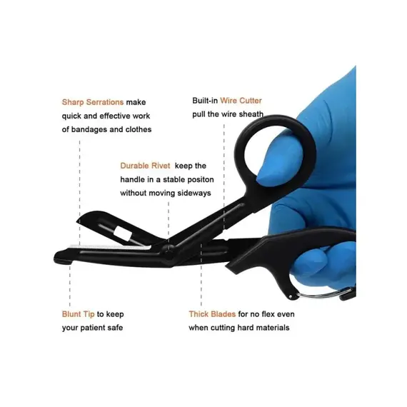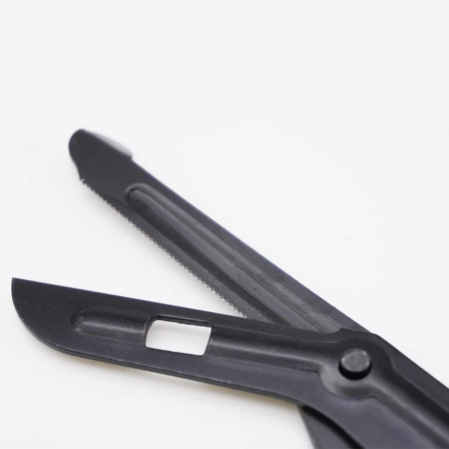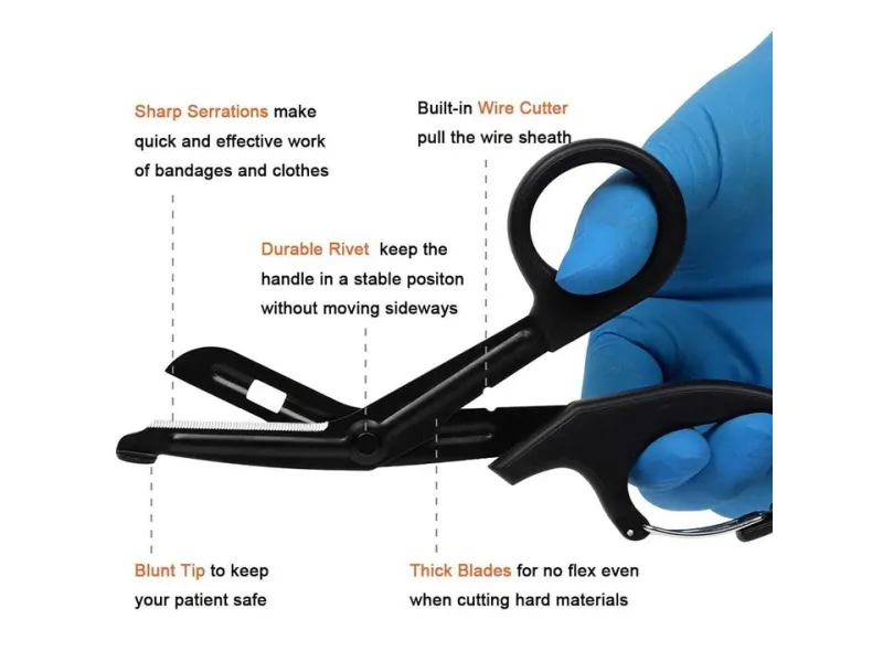 Σχεδίαση λεπίδων: Ασφαλείς λεπίδες με άκρη κοπής που δεν προκαλεί τραυματισμό σε δέρμα, ενώ κόβει υφάσματα, τζιν, ζώνες, και επιδέσμους.