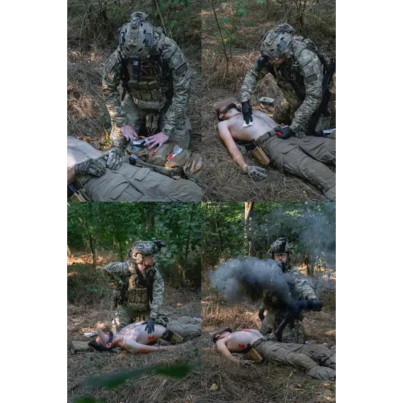 Η Rhino Rescue Θωρακική Σφραγίδα Βαλβίδας με τρείς οπές είναι ένα προηγμένο αποφρακτικό επίθεμα που έχει σχεδιαστεί για τη θεραπεία ανοιχτών πληγών στο στήθος. Οι διεισδυτικοί τραυματισμοί στο στήθος που οδηγούν σε ανοιχτά τραύματα μπορεί να οδηγήσουν σε πνευμοθώρακα τάσης, τη δεύτερη κύρια αιτία θανάτου που μπορεί να προληφθεί στο πεδίο της μάχης.