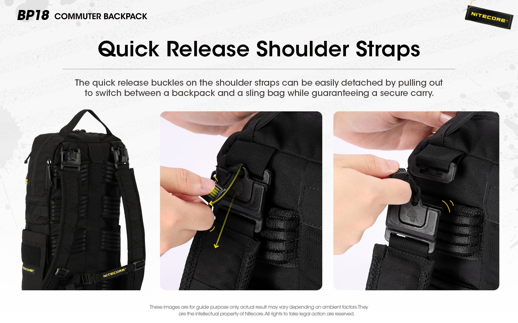 Οι ειδικές πόρπες γρήγορης απελευθέρωσης στους ιμάντες του ώμου μπορούν εύκολα να ξεκουμπώσουν και να