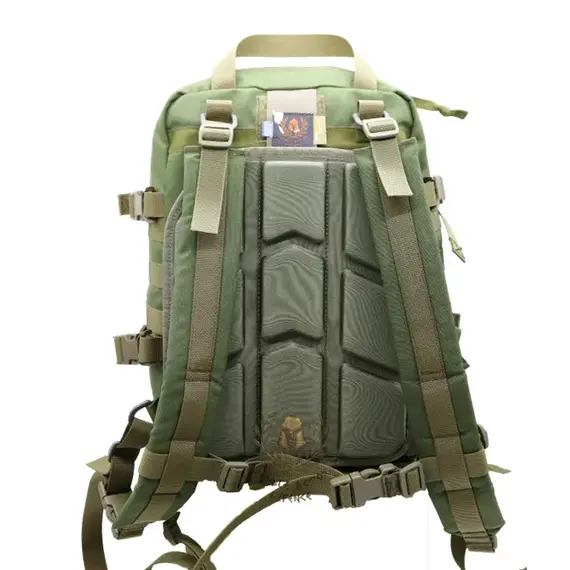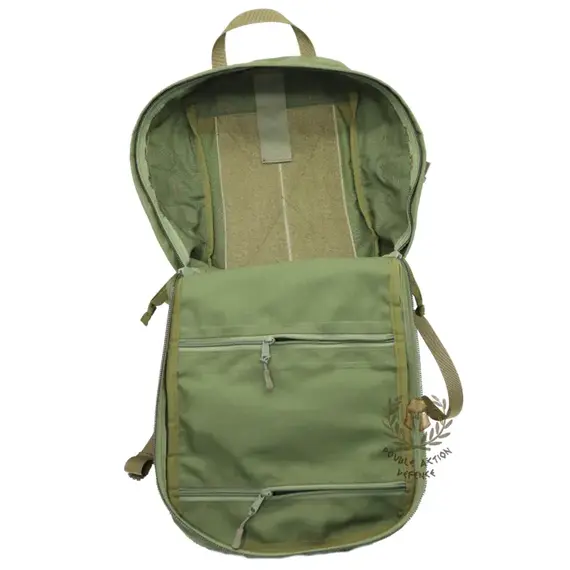 Στο επάνω μέρος του σακιδίου υπάρχει λαβή μεταφοράς και έξοδος για τον σωλήνα του υδροδοχείου πλάτης. Το σακίδιο διαθέτει ισχυρότατο φερμουάρ σχήματος Π προσδίδοντας άμεση και γρήγορη πρόσβαση στο εσωτερικό του. Το σακίδιο στην εσωτερική επιφάνεια του καπακιού διαθέτει δύο τσέπες με φερμουάρ και στην εσωτερική επιφάνεια της πλάτης υπάρχουν δύο παράλληλες επιφάνειες μαλακού VELCRO και είναι τοποθετημένες διχτυωτές θήκες για την καλύτερη δυνατή οργάνωση και να χρησιμοποιηθεί σε διάφορες αποστολές πχ σαν ιατρικό η πυροτεχνουργού κλπ.