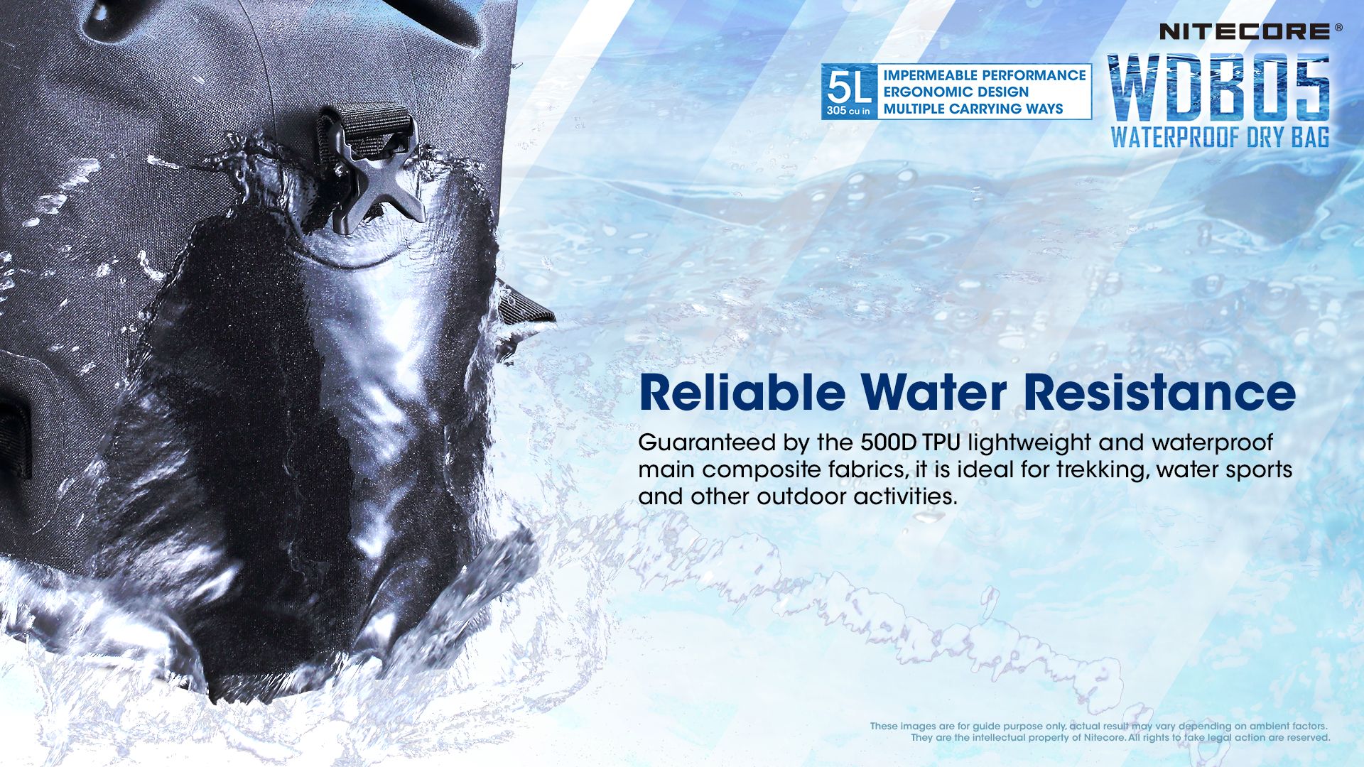 Εξασφαλίζεται από το κύριο συνθετικό ύφασμα TPU 500D που είναι ελαφρύ και αδιάβροχο,