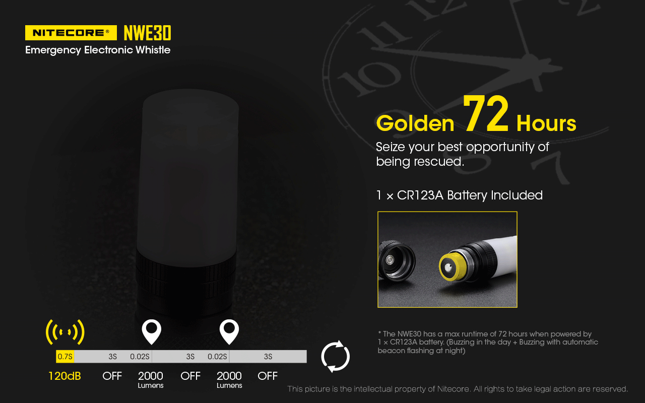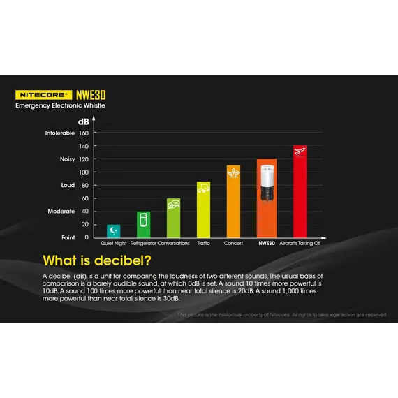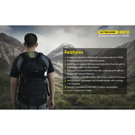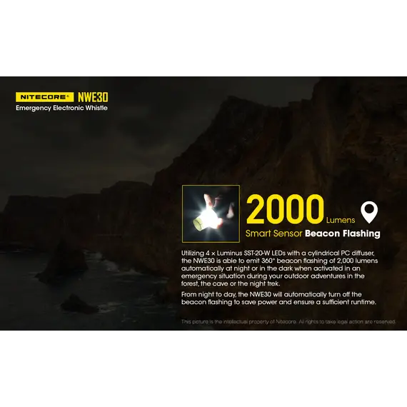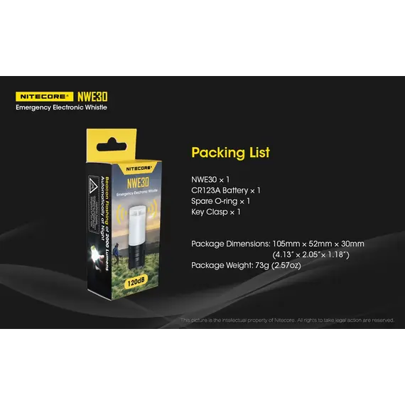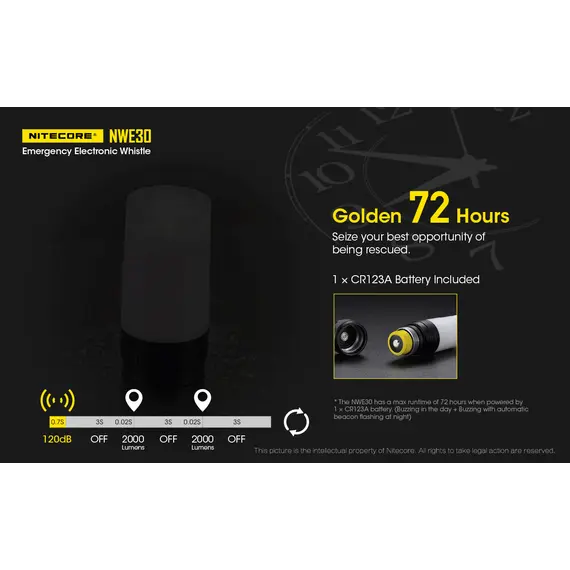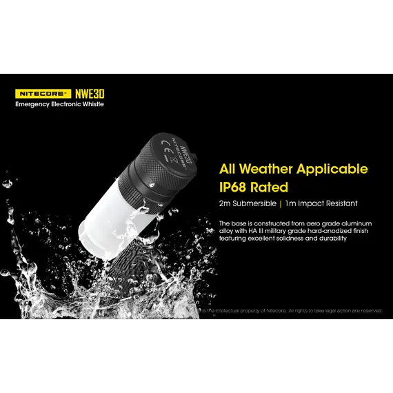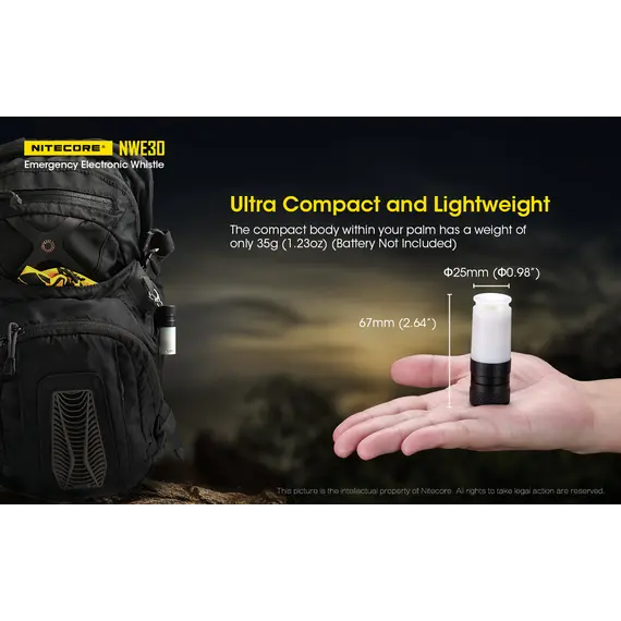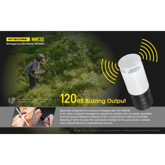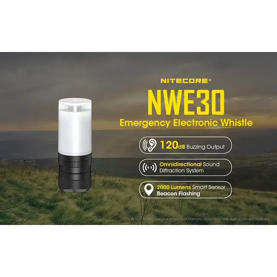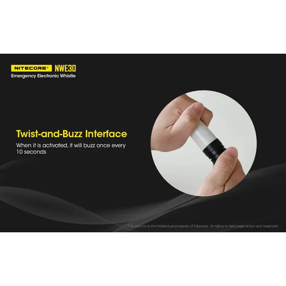 Η NITECORE NWE30 είναι μία εξαιρετικά συμπαγής ηλεκτρονική σφυρίχτρα έκτακτης ανάγκης με έναν εύχρηστο τρόπο ενεργοποίησης με περιστροφή.