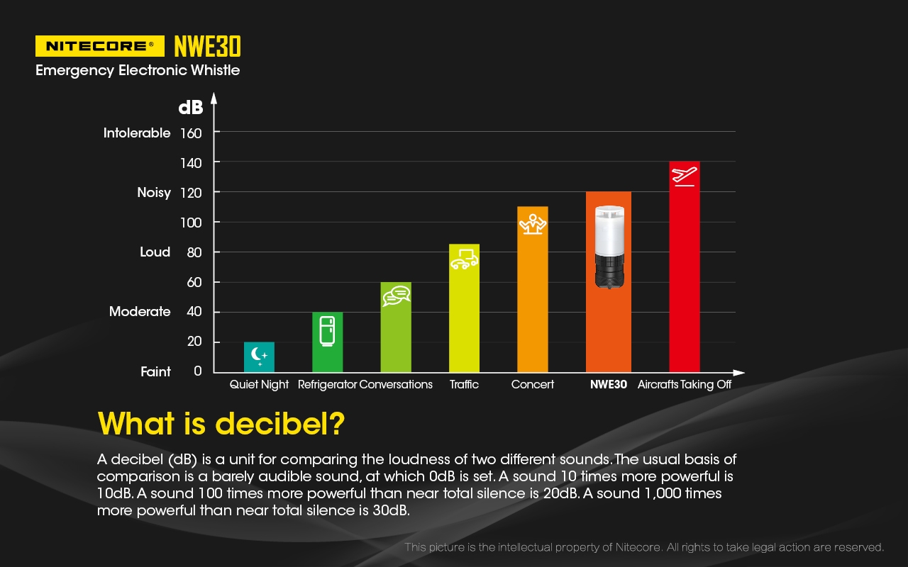 2. Το διακοπτόμενο ηχητικό σήμα των 12dB είναι ειδικά σχεδιασμένο για καταστάσεις έκτακτης ανάγκης. Η NWE30 είναι μία πολύ μικρή σε μέγεθος ηλεκτρονική