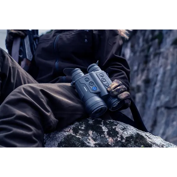 Τα κιάλια θερμικής απεικόνισης Merger LRF είναι κατασκευασμένα με τον κλασικό σχεδιασμό των κιαλιών ημέρας. Με μικρό συντελεστή μορφής, αυτά τα κιάλια θερμικής απεικόνισης εφαρμόζουν άνετα στο χέρι, αλλά εξακολουθούν να προσφέρουν ελκυστική εξωτερική αισθητική και υποδειγματική εργονομία. Τα έξι κουμπιά λειτουργιών είναι τοποθετημένα στη ζώνη άνετης πρόσβασης και οι πιο συχνά χρησιμοποιούμενες λειτουργίες της ψηφιακής συσκευής ενεργοποιούνται με ένα μόνο άγγιγμα.