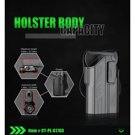ΘΗΚΗ ΠΙΣΤΟΛΙΟΥ CYTAC, και για Φακό, για Glock 17, Black