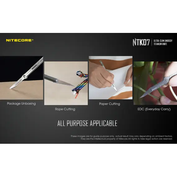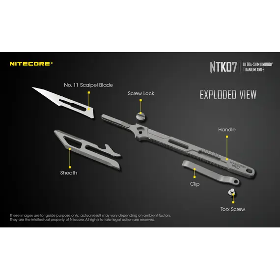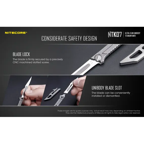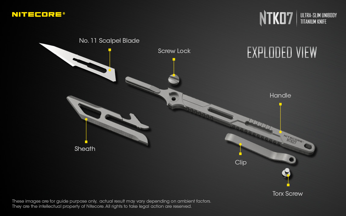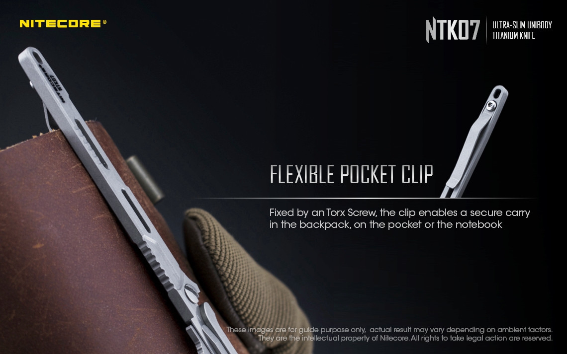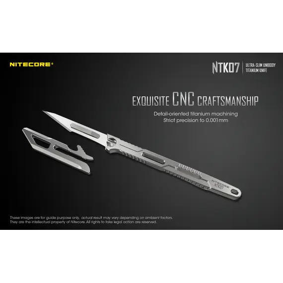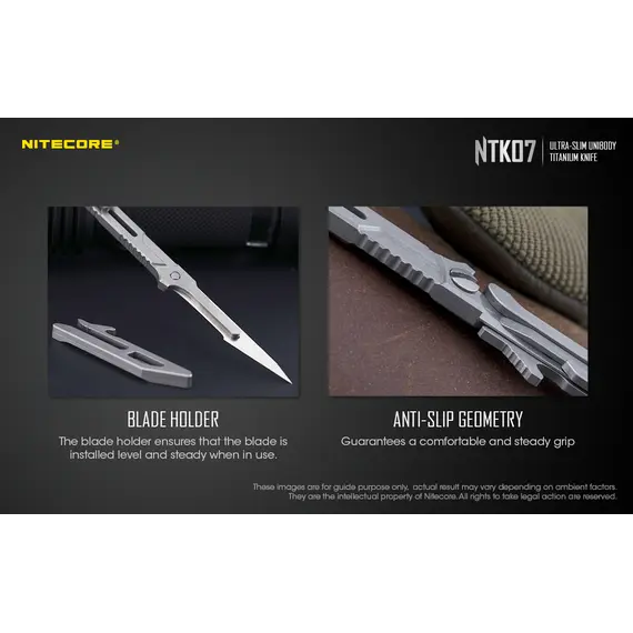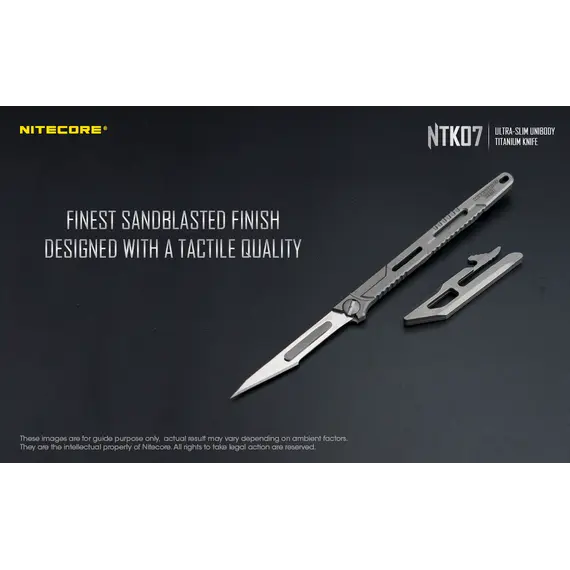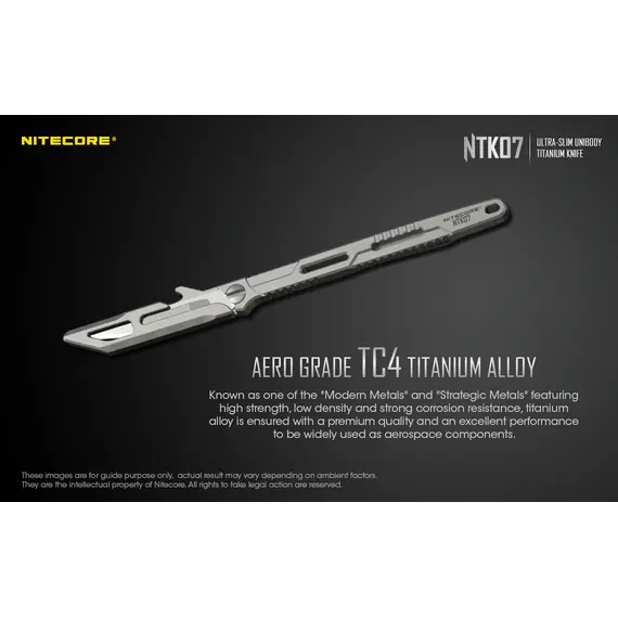 Το NTK07 είναι ένα εξαιρετικά λεπτό μαχαίρι τιτανίου, ενιαίου σώματος κατασκευασμένο από κράμα τιτανίου TC4 αεροναυπηγικής ποιότητας με εξαιρετική