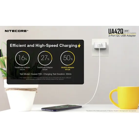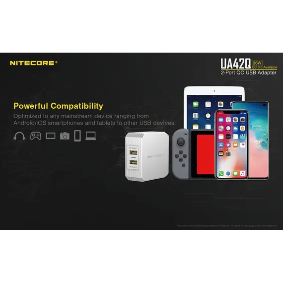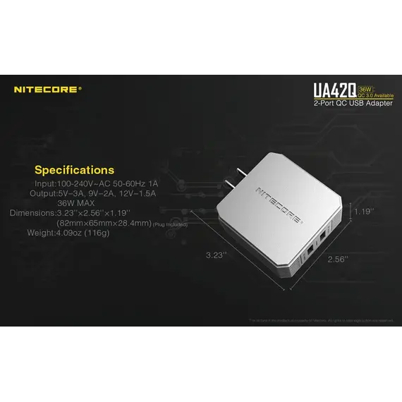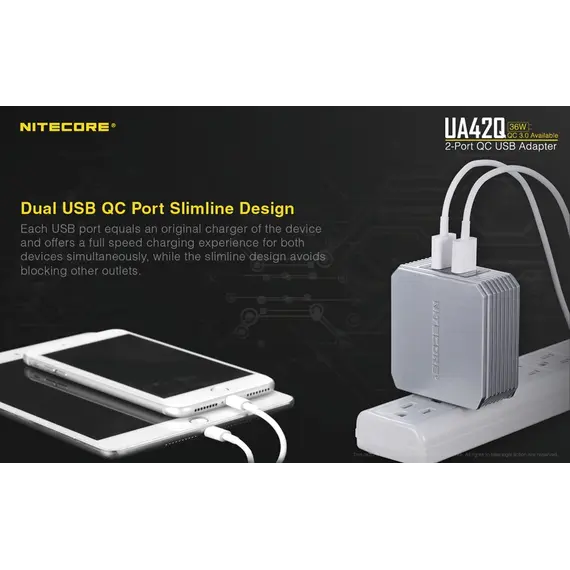 ΤΡΟΦΟΔΟΤΙΚΟ USB, NITECORE UA42Q Quick charge 3.0